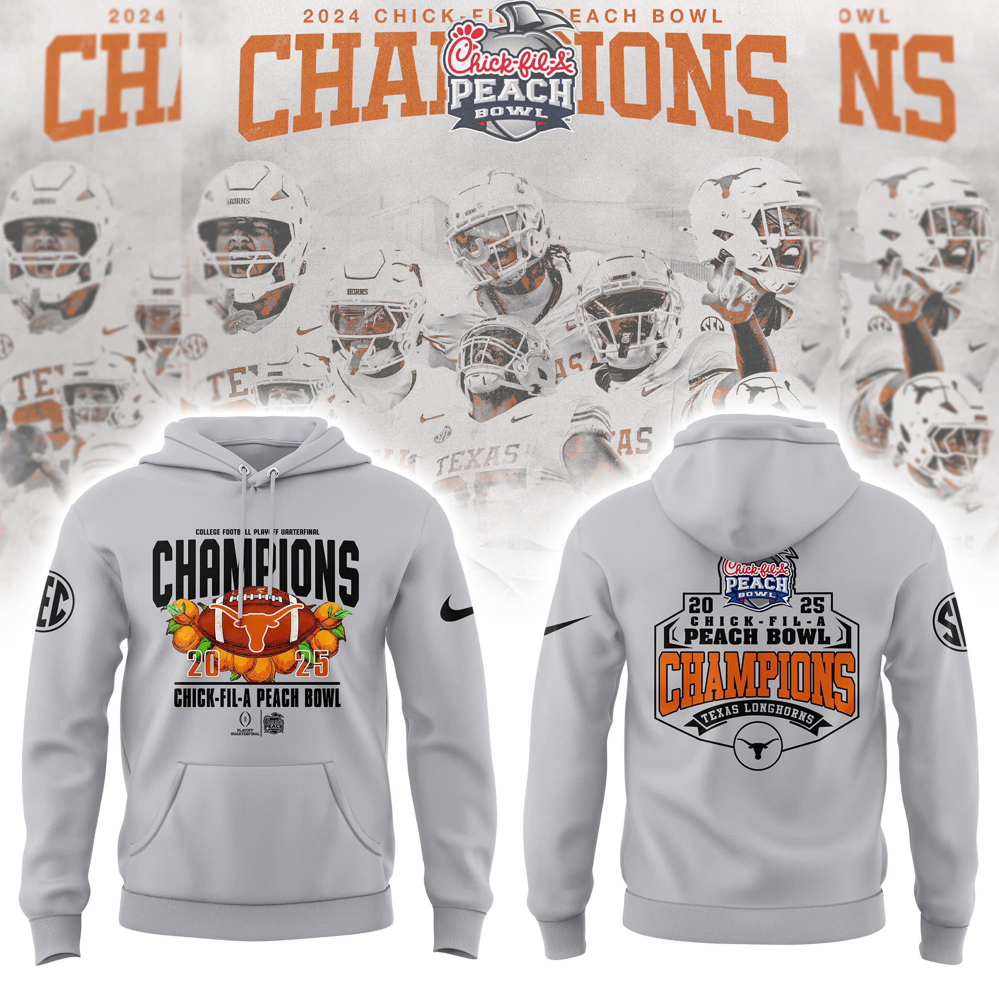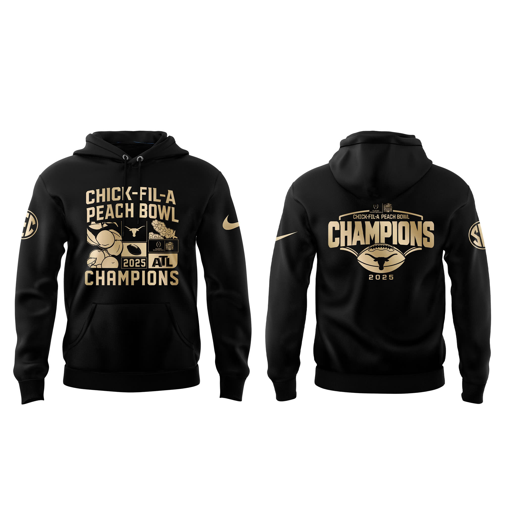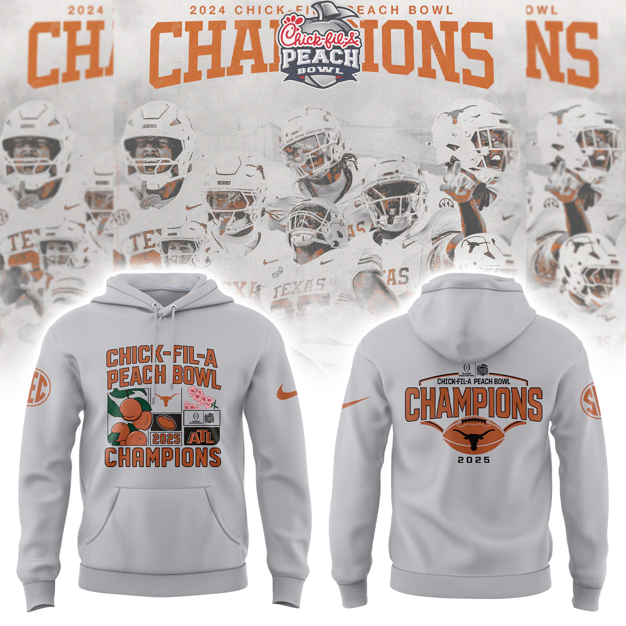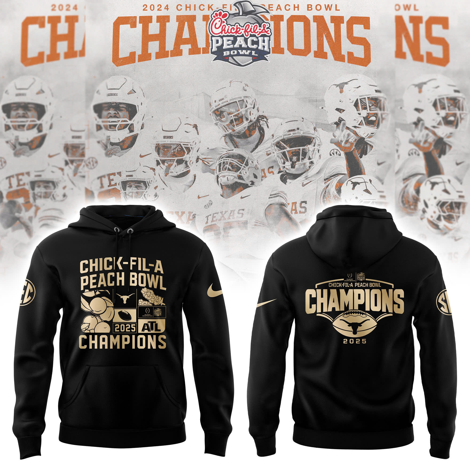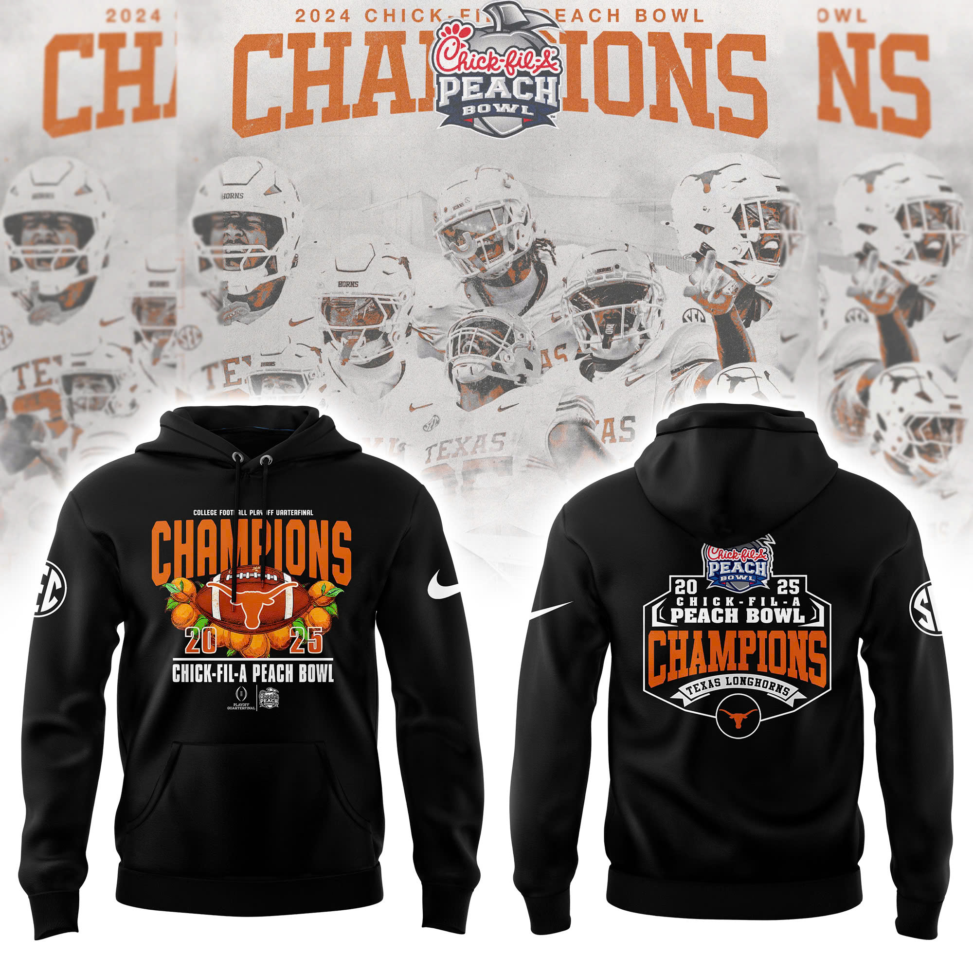 Texas Longhorns College Football Playoff 2025 Peach Bowl Champions Victory Hoodie