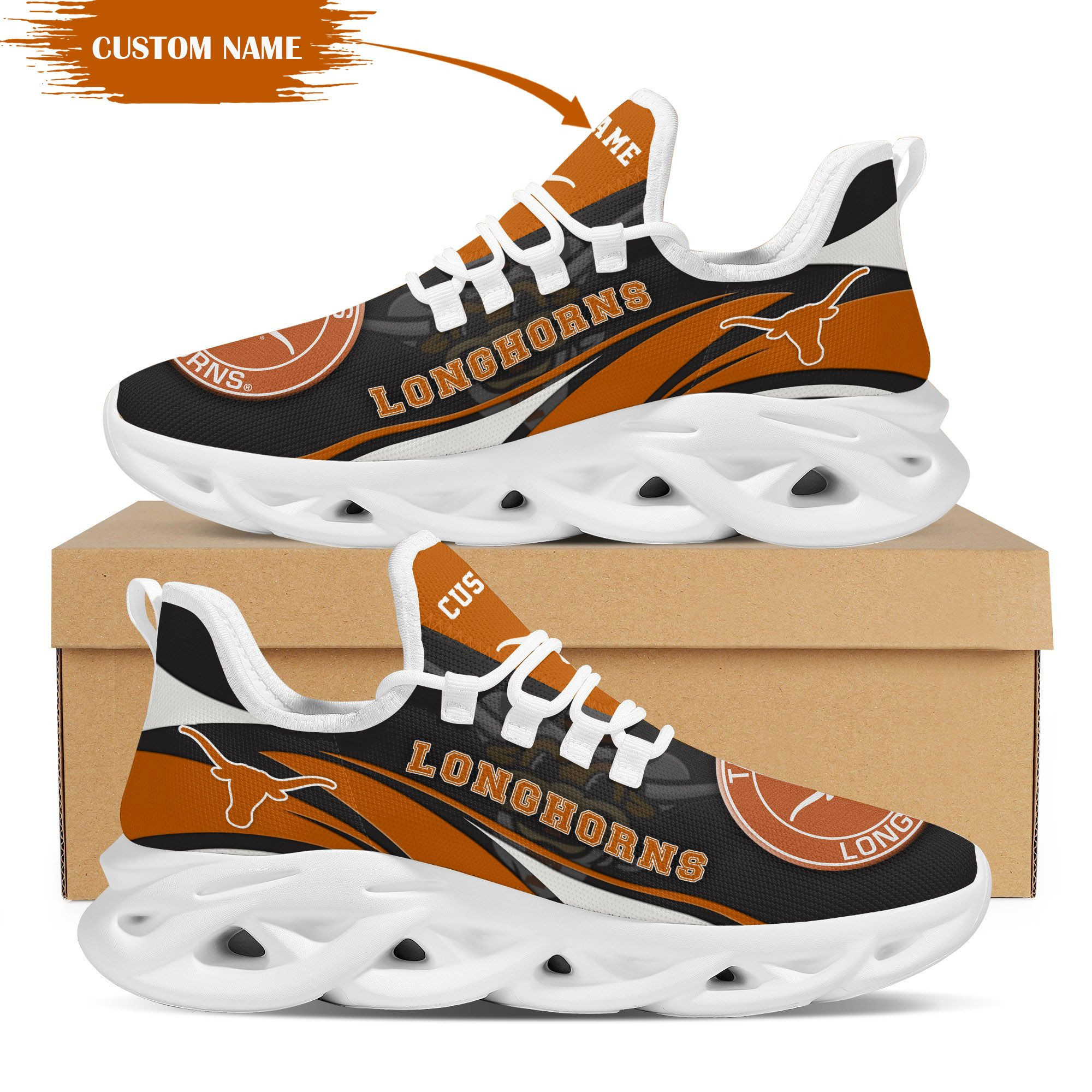 Texas Longhorns Mascot Custom Name Personalized Max Soul Sneakers