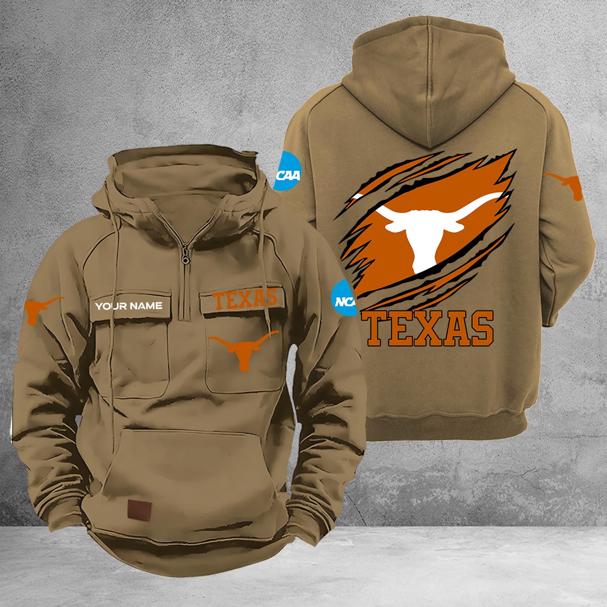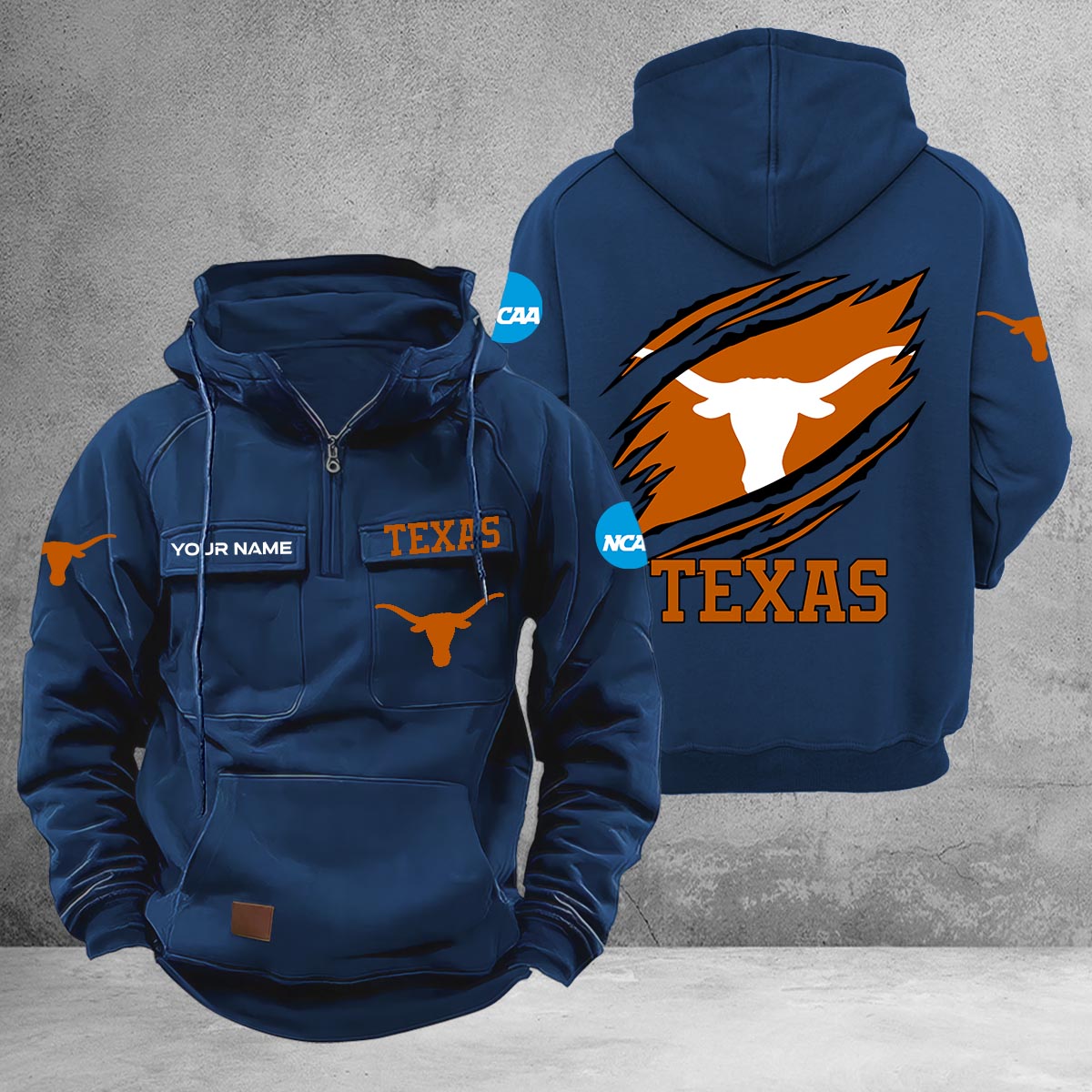 Texas Longhorns Multi-Pockets Zip-Up Hoodie