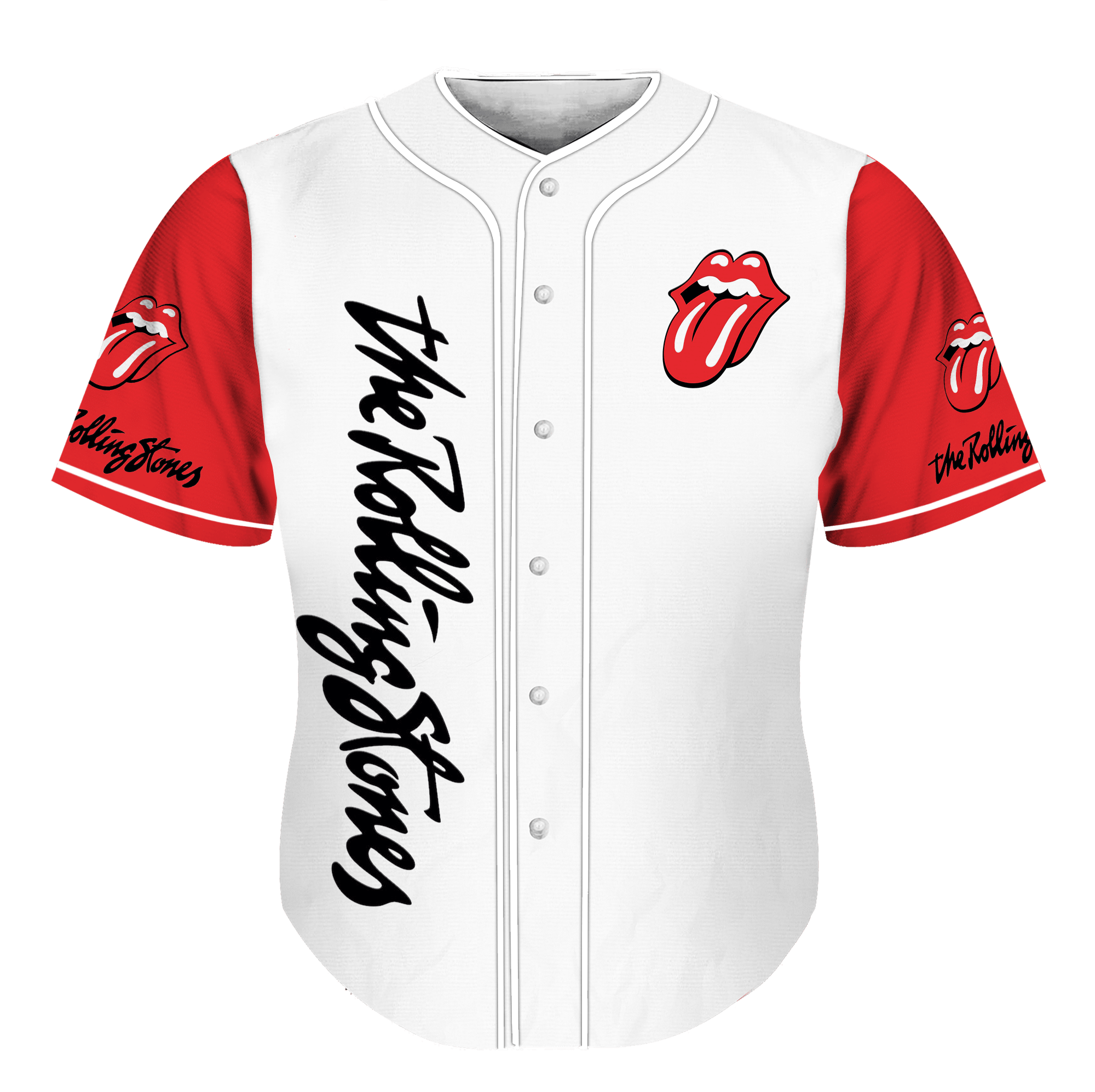 - Feature: Show your team some love. With this pink button-front logo baseball jersey, finished with a large sports-inspired logo across the front. Take me out to the ball game. Featuring a v-neck, short sleeves, a curved hem, a front logo print and a front logo patch.