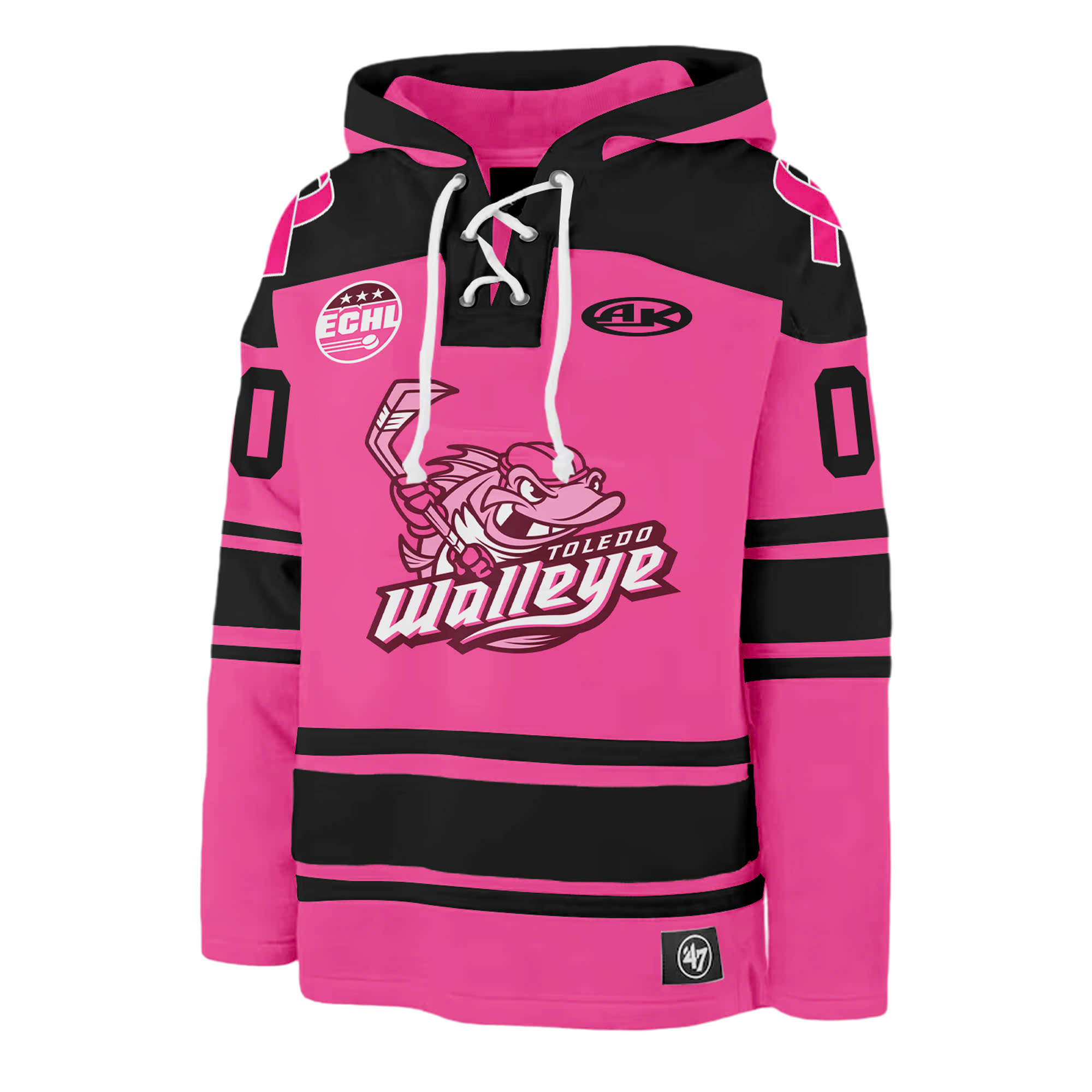 Toledo Walleye x 2025 Pink in the Rink Premium Custom Lace up Hoodie