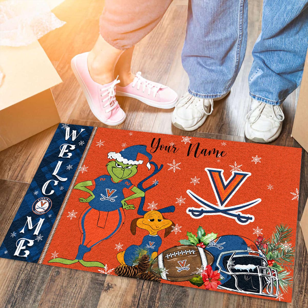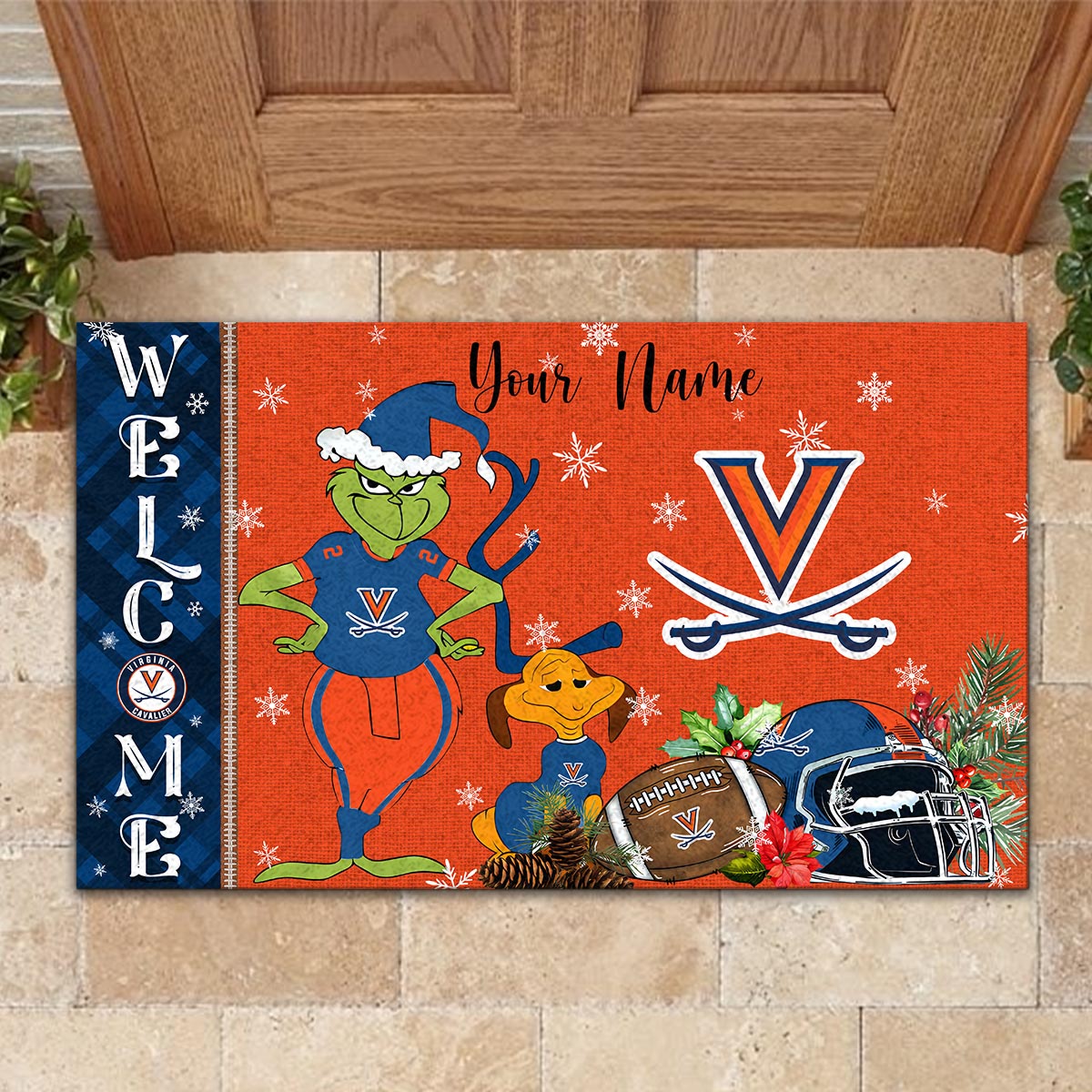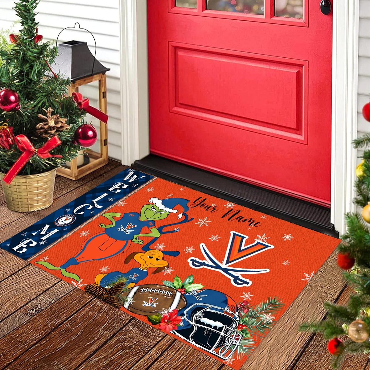 Virginia Cavaliers Grinch Christmas Welcome Football Doormat