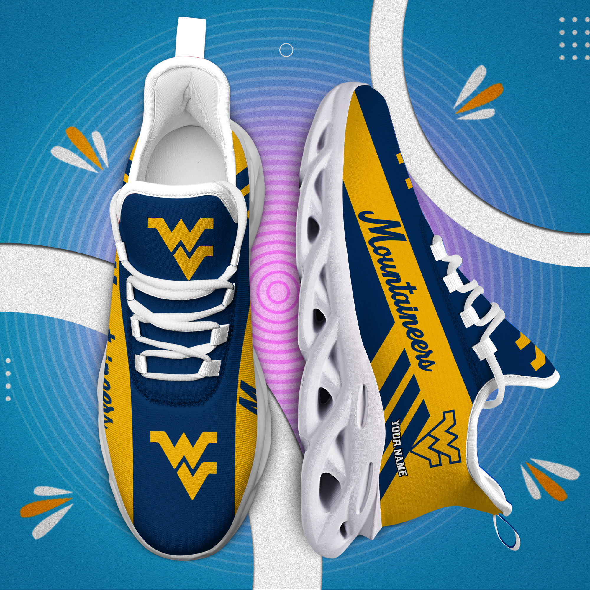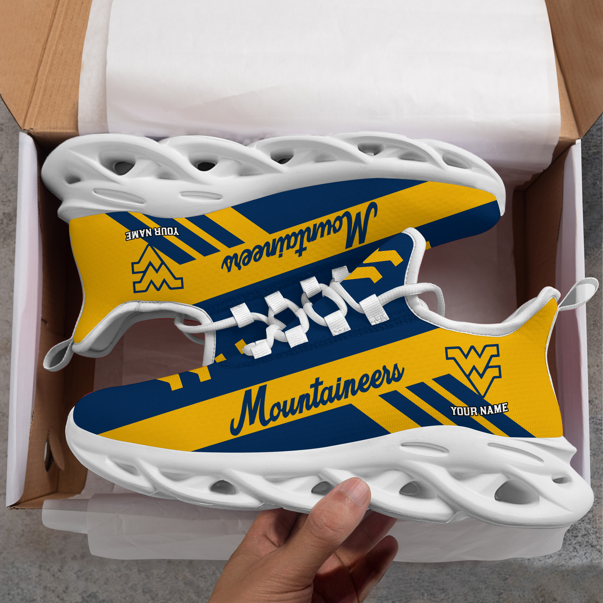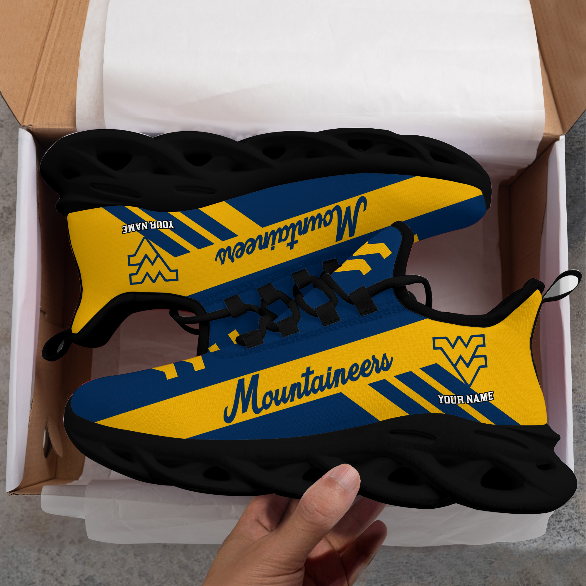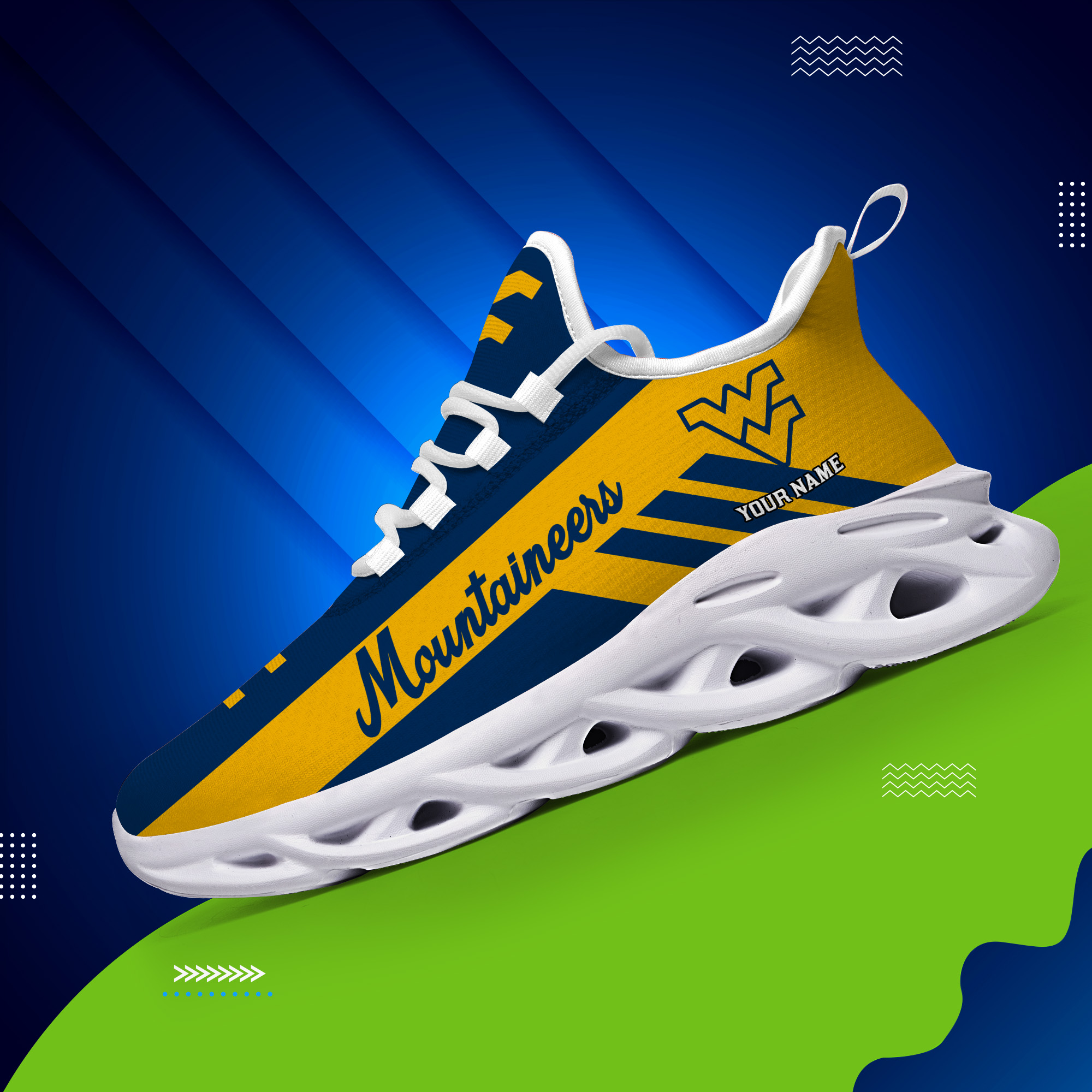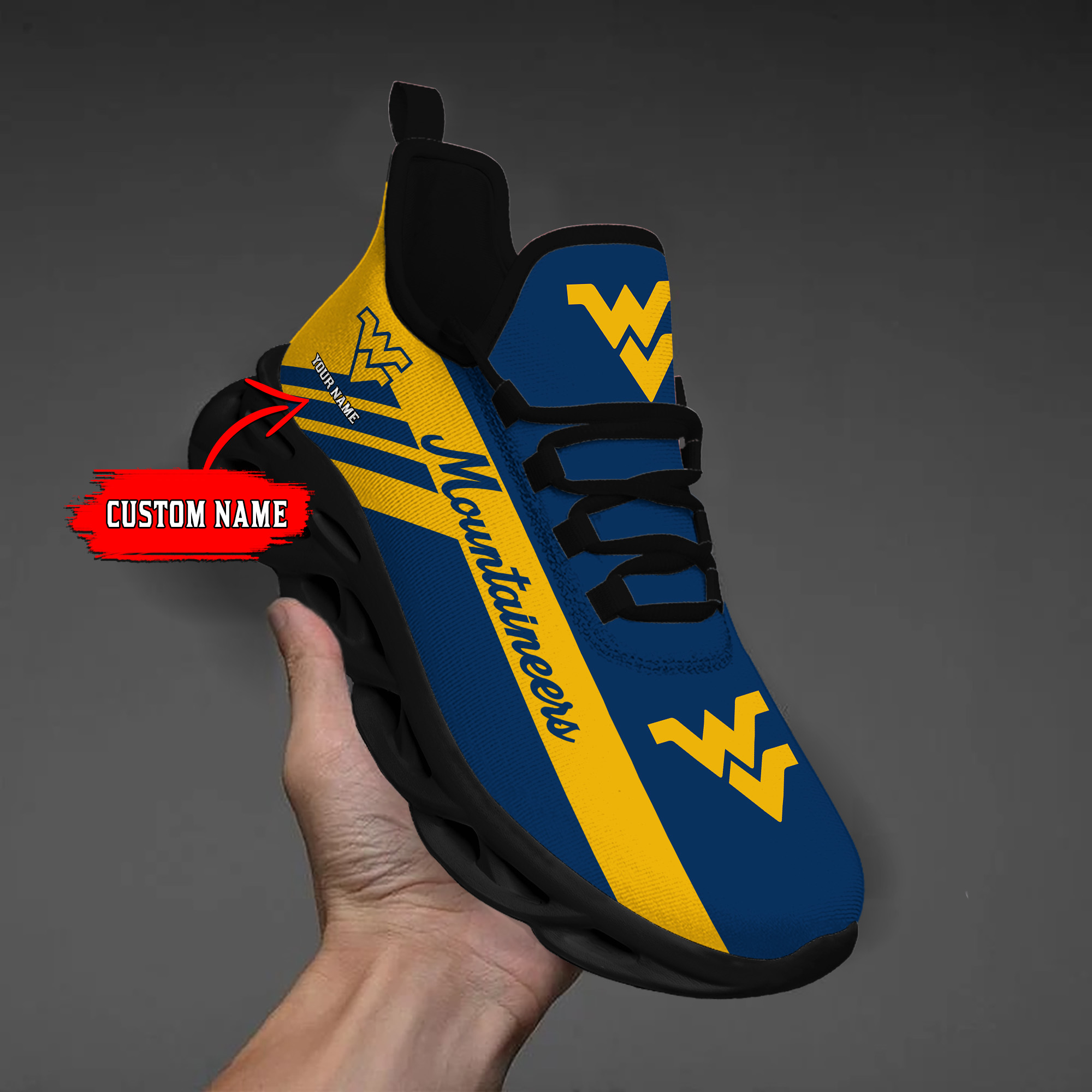 West Virginia Mountaineers Custom Name PERSONALIZED MAX SOUL SHOES DS004