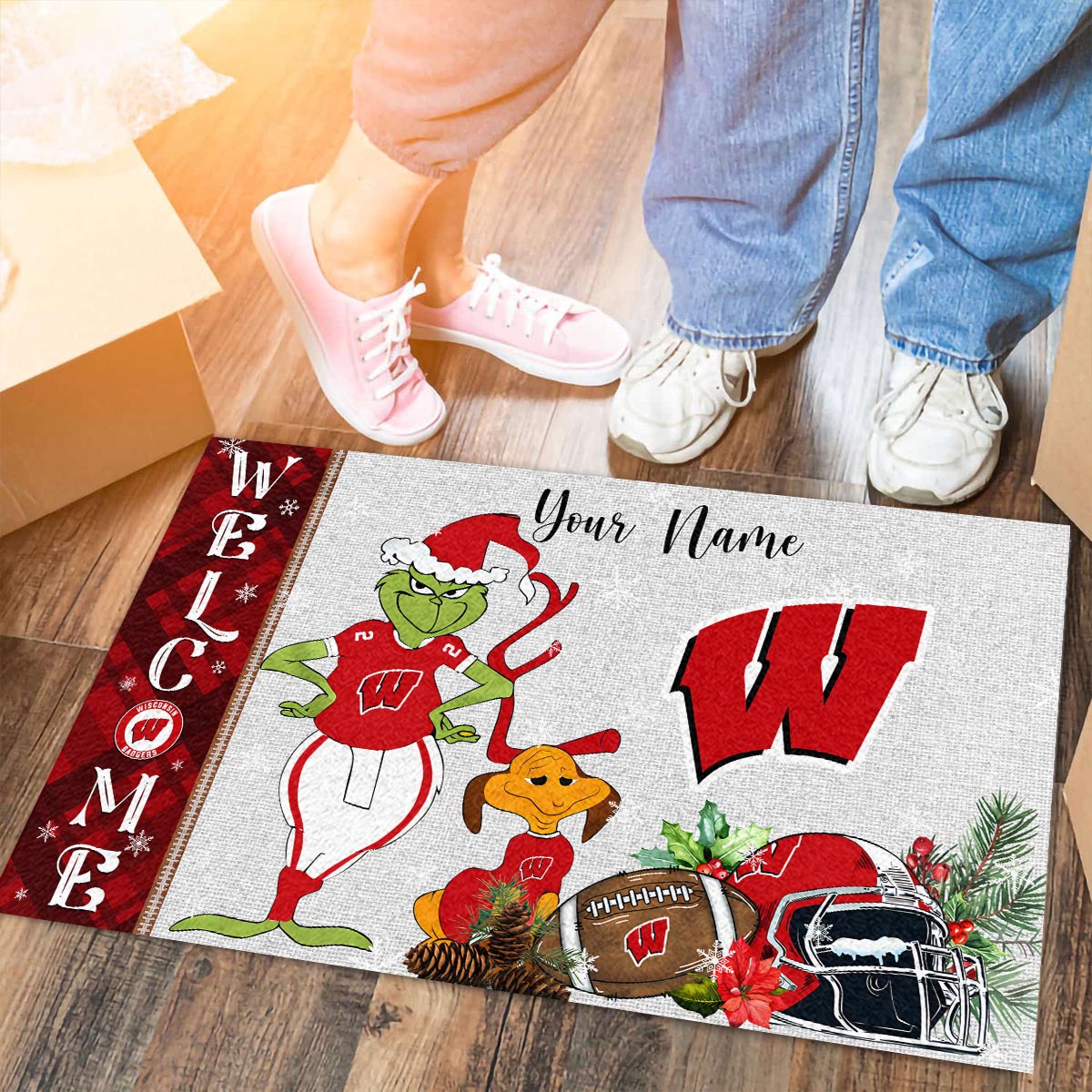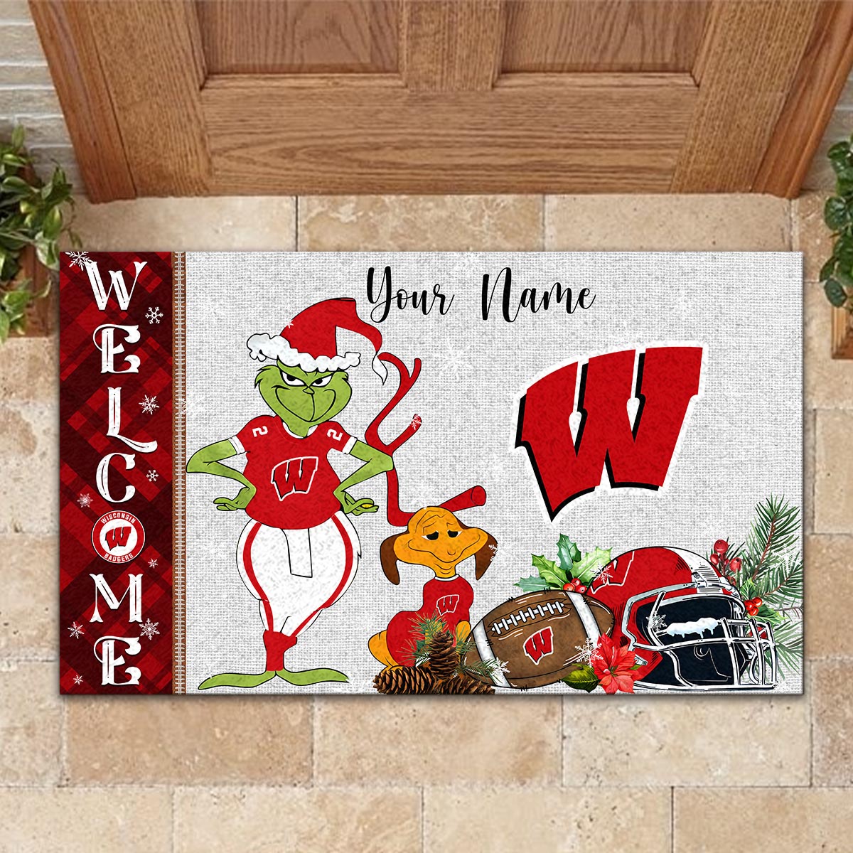 Wisconsin Badgers Grinch Christmas Welcome Football Doormat