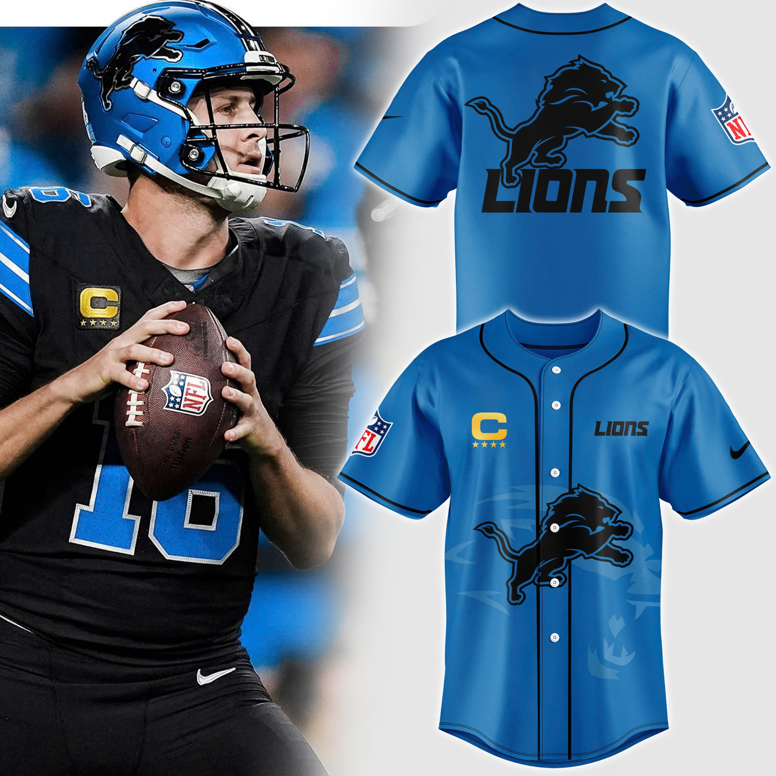 Blue Detroit Lions Baseball Jersey V2