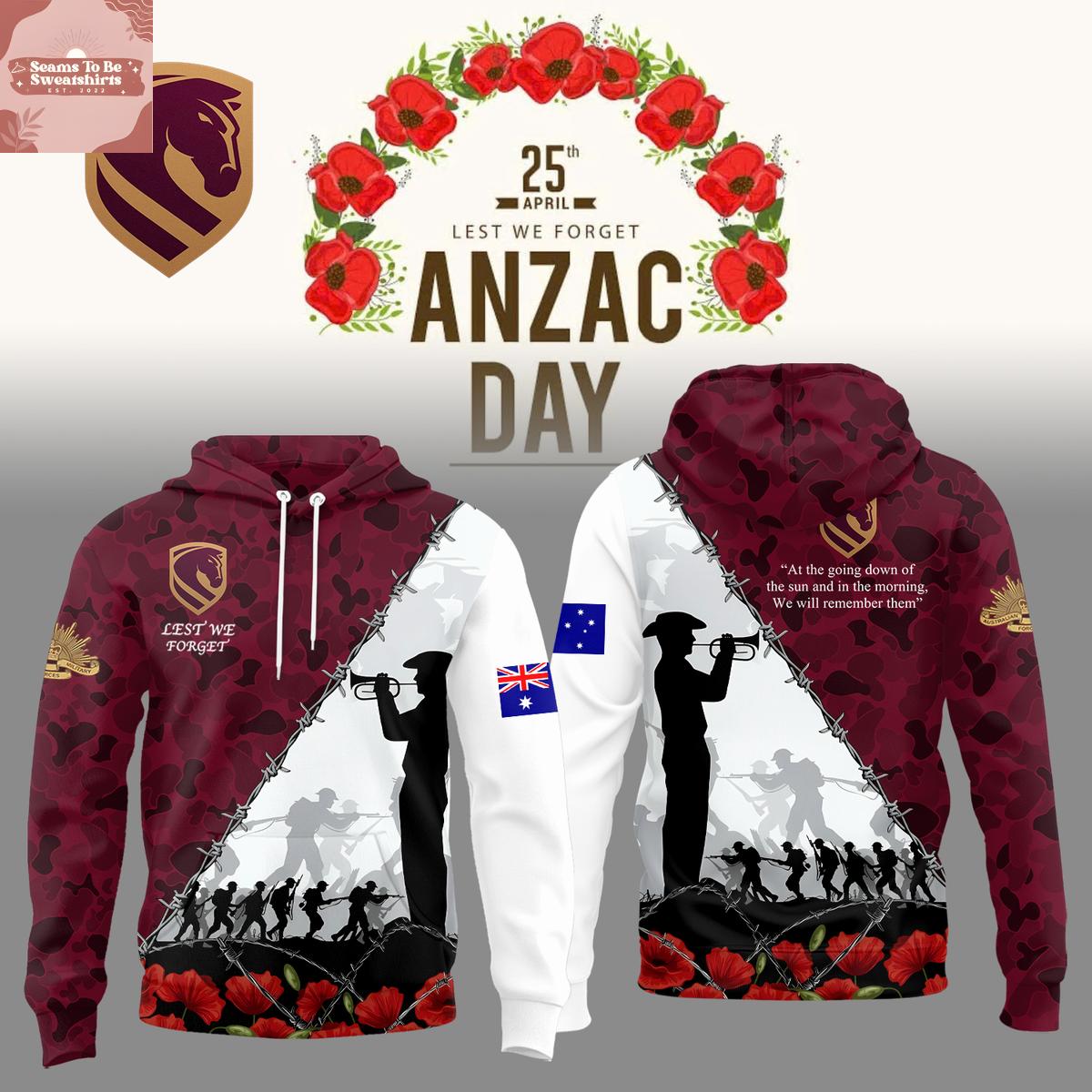 Brisbane Broncos x Anzac Day 2026 Lest We Forget Hoodie