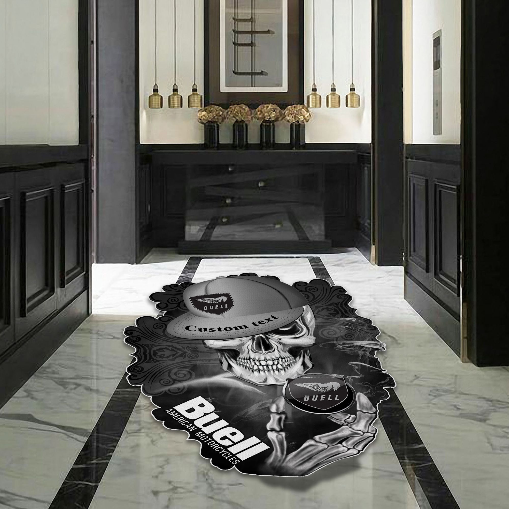 Buell Motorcycles Skull Shaped Luxurious Doormat, Rug Home Decor, Custom name