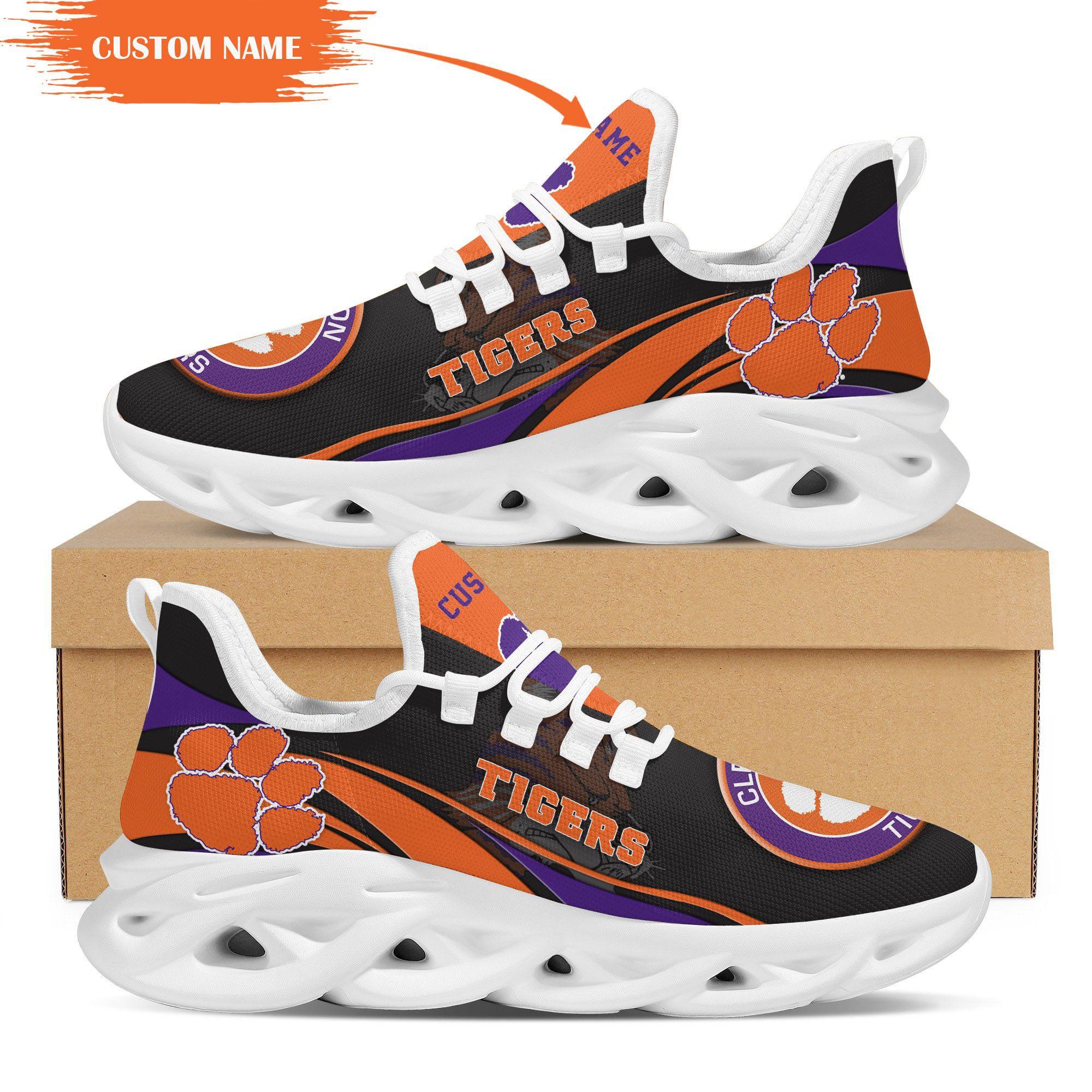 Clemson Tigers Mascot Custom Name Personalized Max Soul Sneakers
