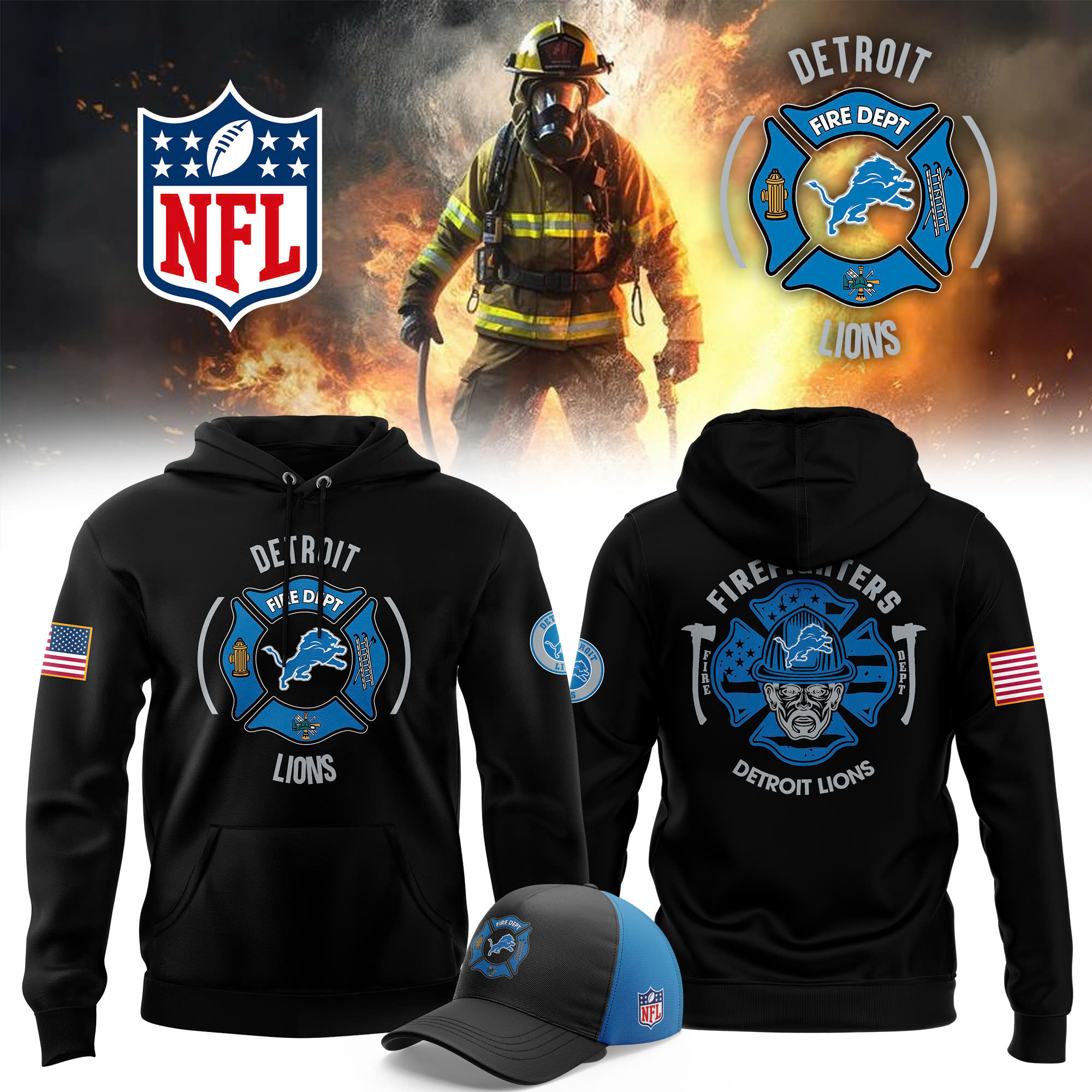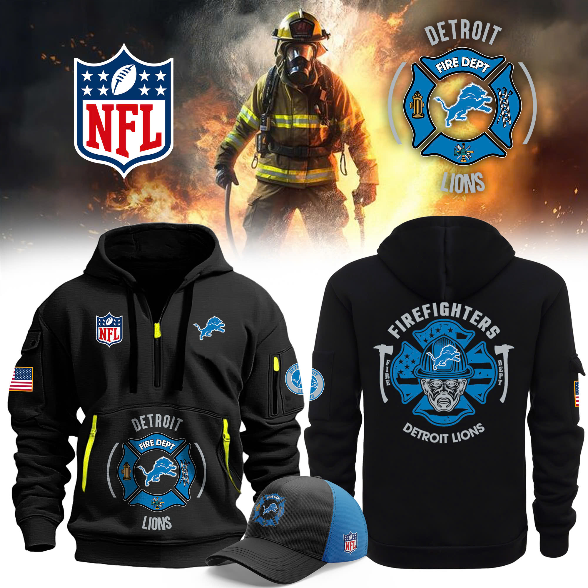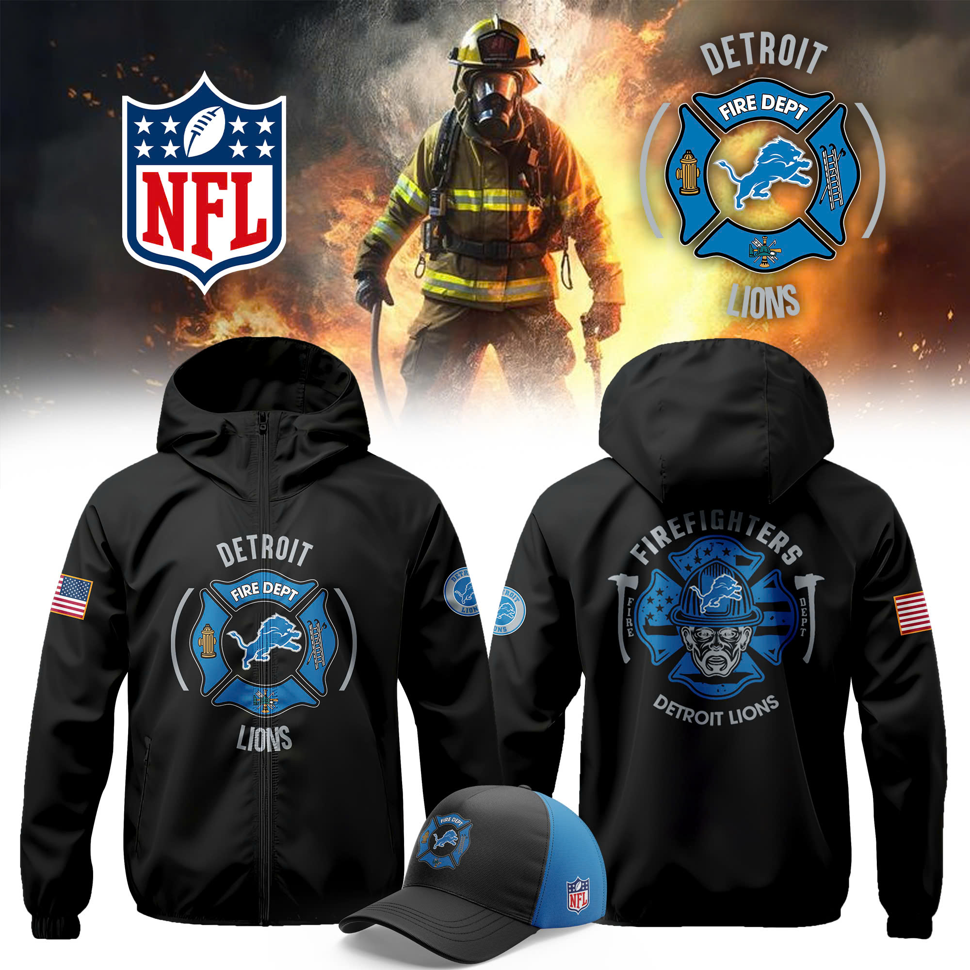 Detroit Lions x Firefighter Appreciation Night Premium Pullover Zip Hoodie