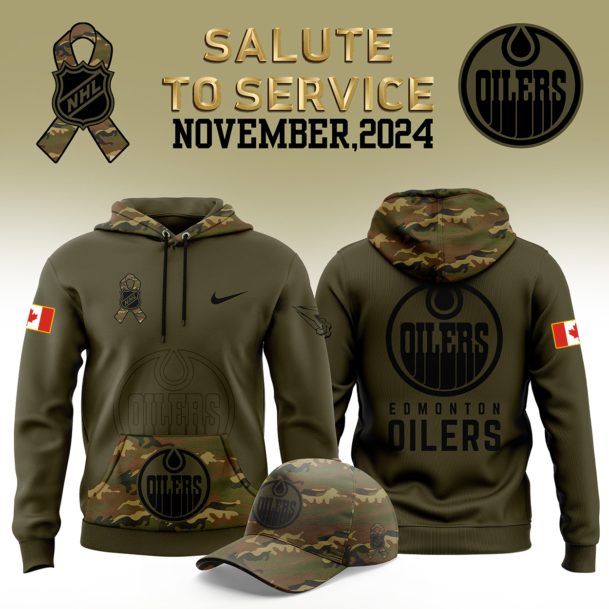Edmonton Oilers Camo Salute to Service Club Fleece Pullover Hoodie