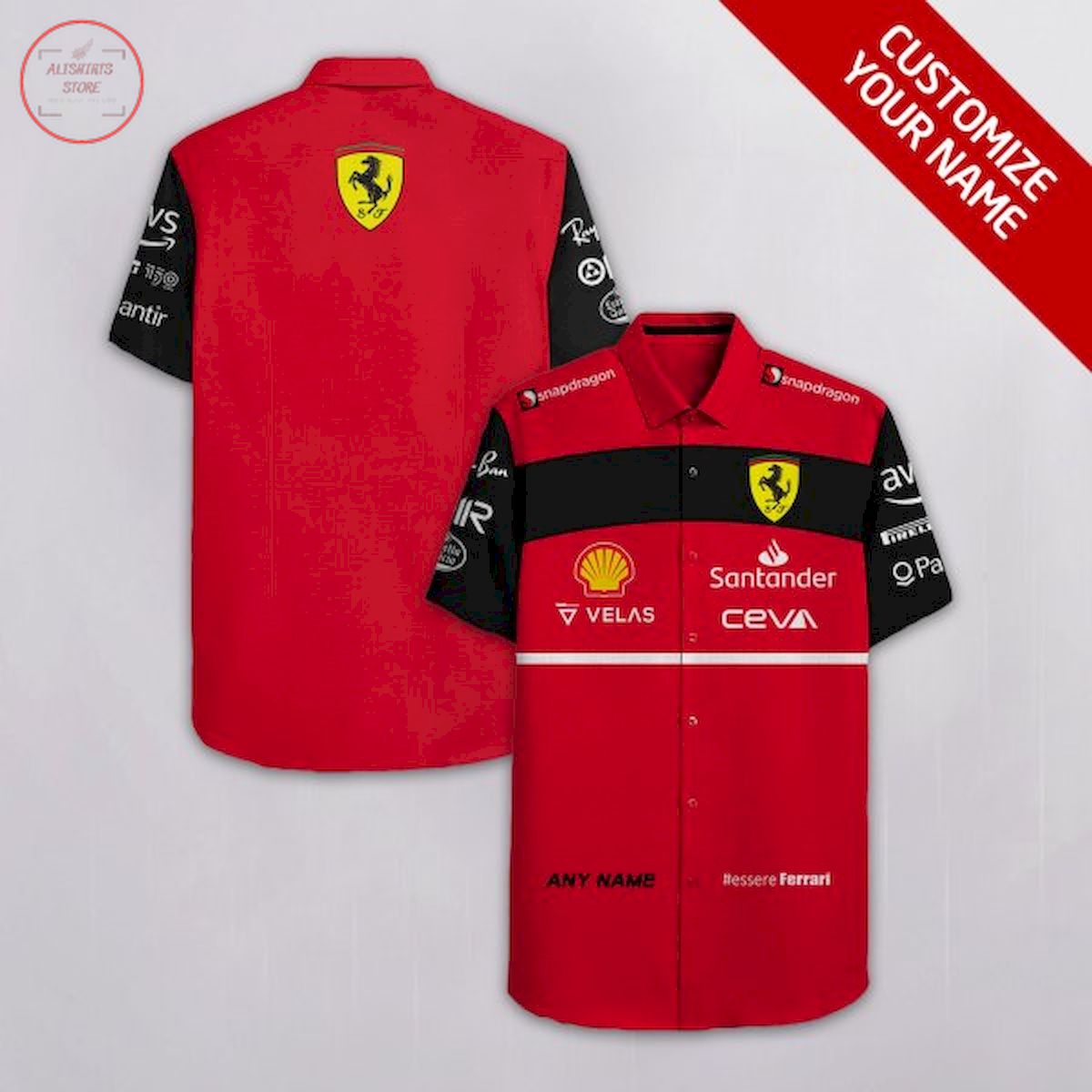 Ferrari Button Shirt Custom Name, Multicolor