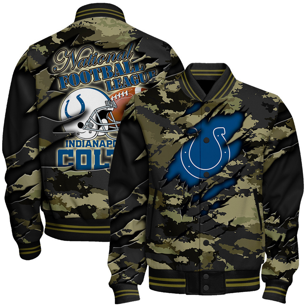 Indianapolis Colts Black Camo Pattern National Football League Varsity Jacket