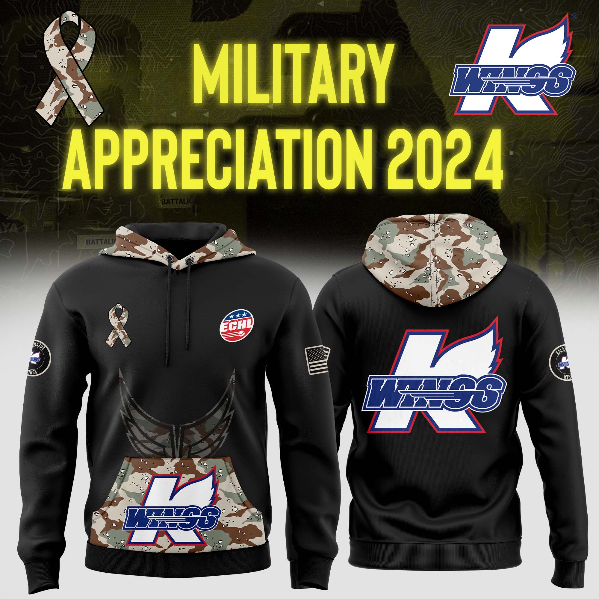 Kalamazoo Wings Arctic Camo Salute to Service Club Fleece Pullover Hoodie