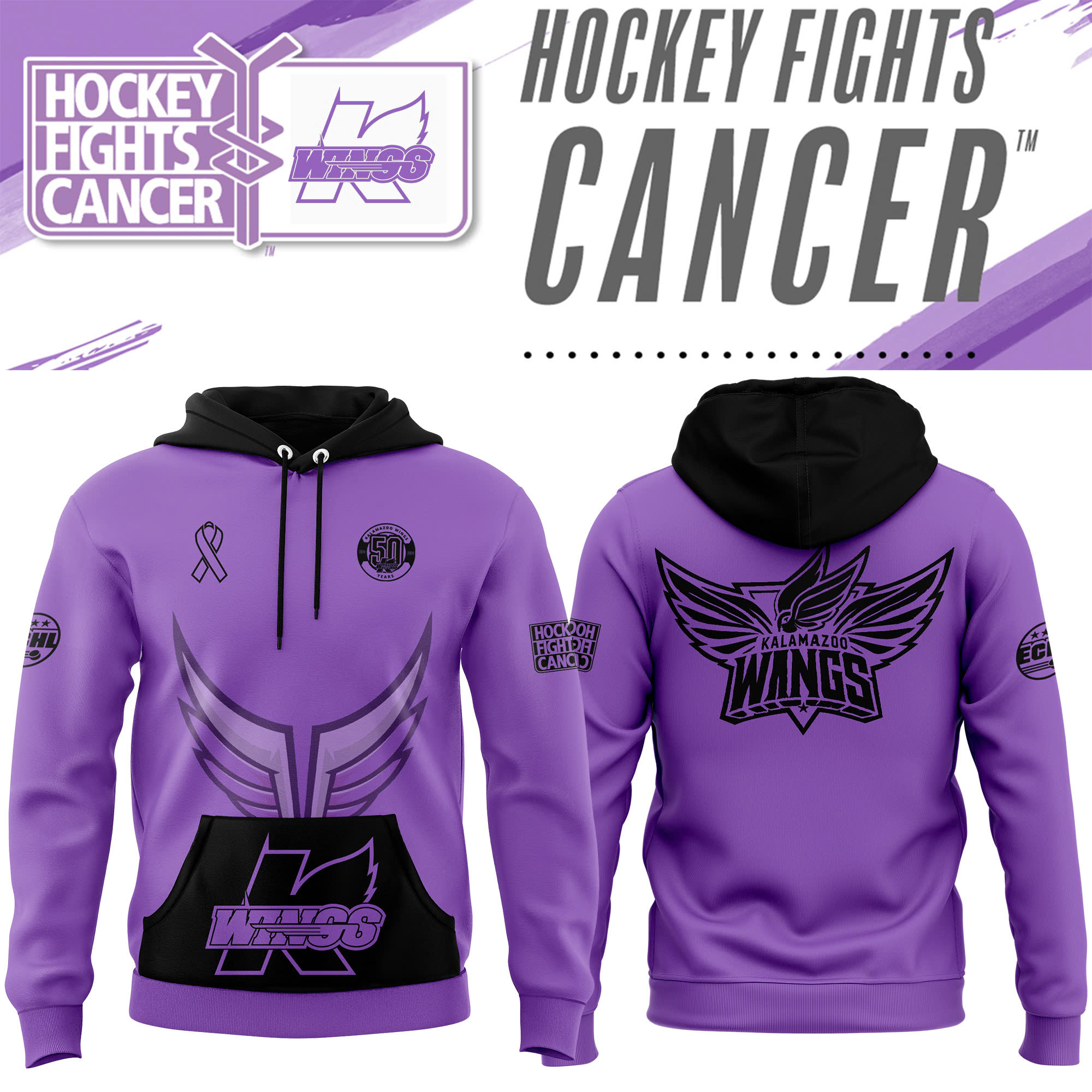 Kalamazoo Wings Hockey Fight Cancer Hoodie