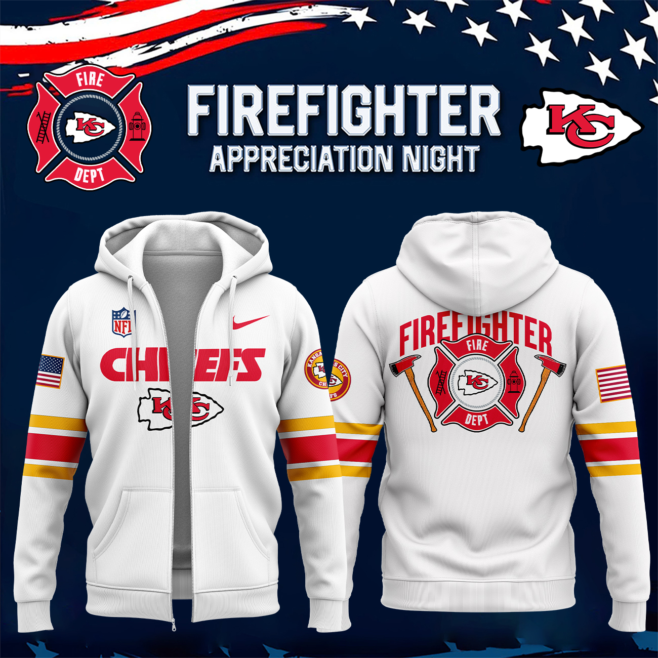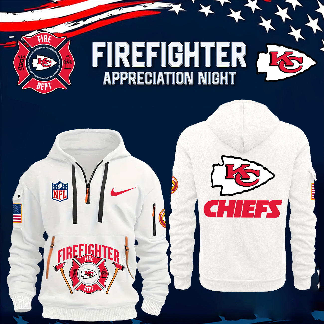Kansas City Chiefs x Firefighter Appreciation Night Premium Pullover Zip Hoodie