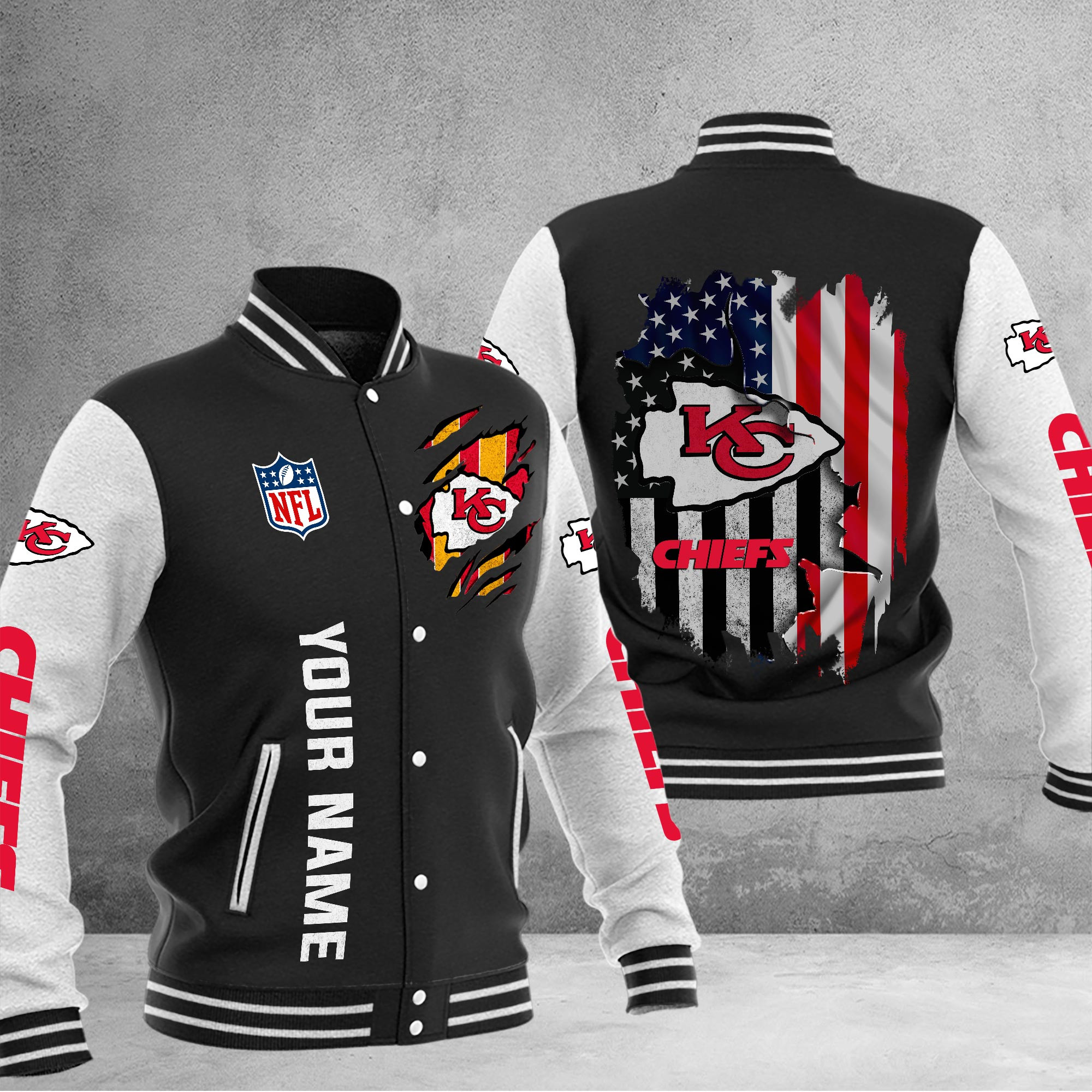 Kansas City Chiefs American Football League Pattern Varsity Jacket SH1 V3