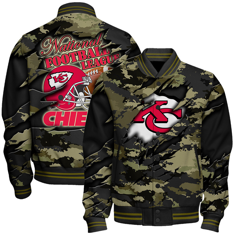 Kansas City Chiefs Black Camo Pattern National Football League Varsity Jacket