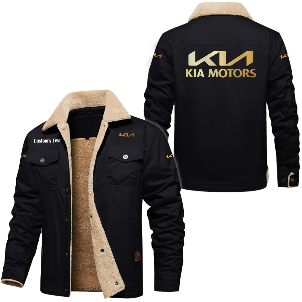 kia Golden Logo Cargo Fleece Lined Cotton Jacket Multicolor, vintage style, customize name