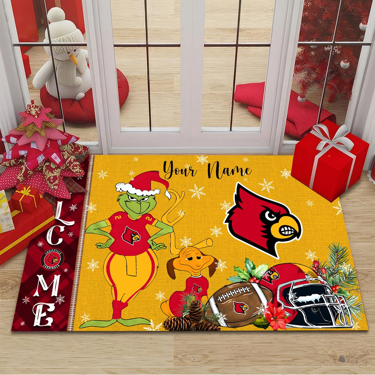Louisville Cardinals Grinch Christmas Welcome Football Doormat