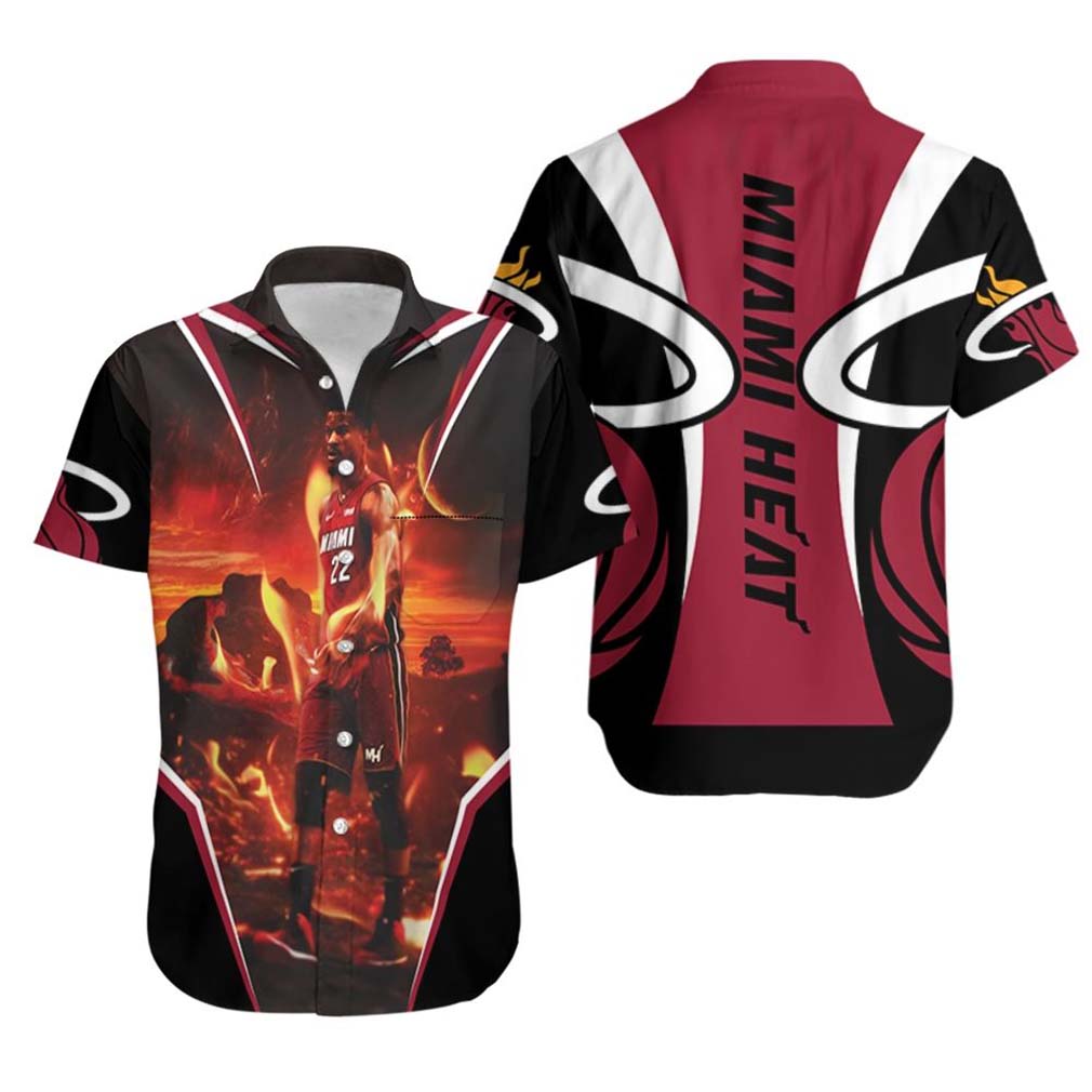 Miami Heat Jimmy Butler 22 Walk On Fire Hawaiian Shirt Gify For