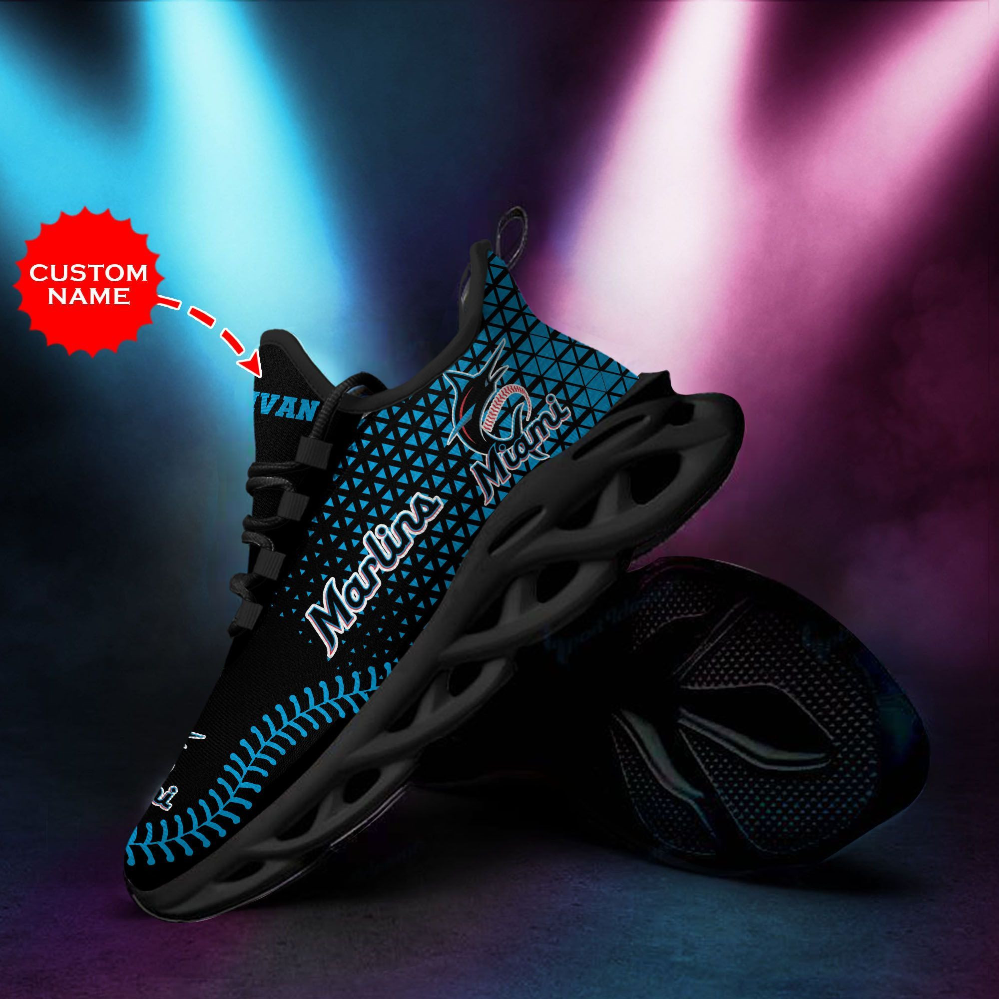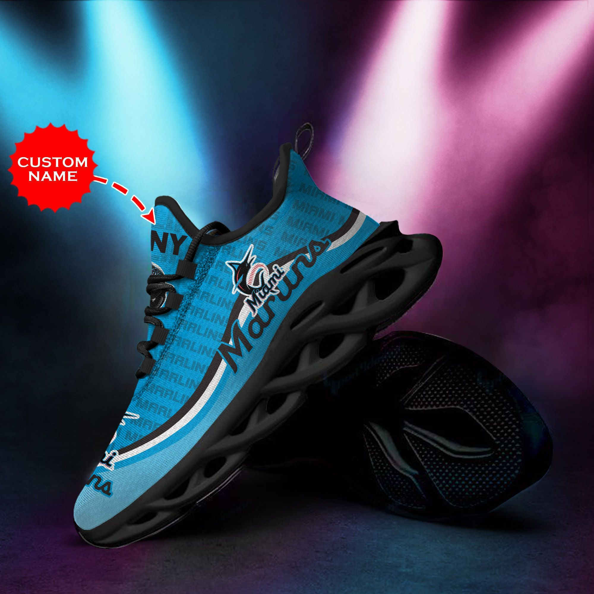 Miami Marlins Custom Baseball Personalized Max Soul Sneakers Running Sport Shoes for Men Women