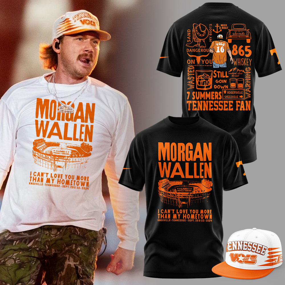 Morgan Wallen Live Knoxville Tennessee Sept 20 & 22 Black Tshirt+Pants+Snapback Cap Set+NT23092416ID10DS10