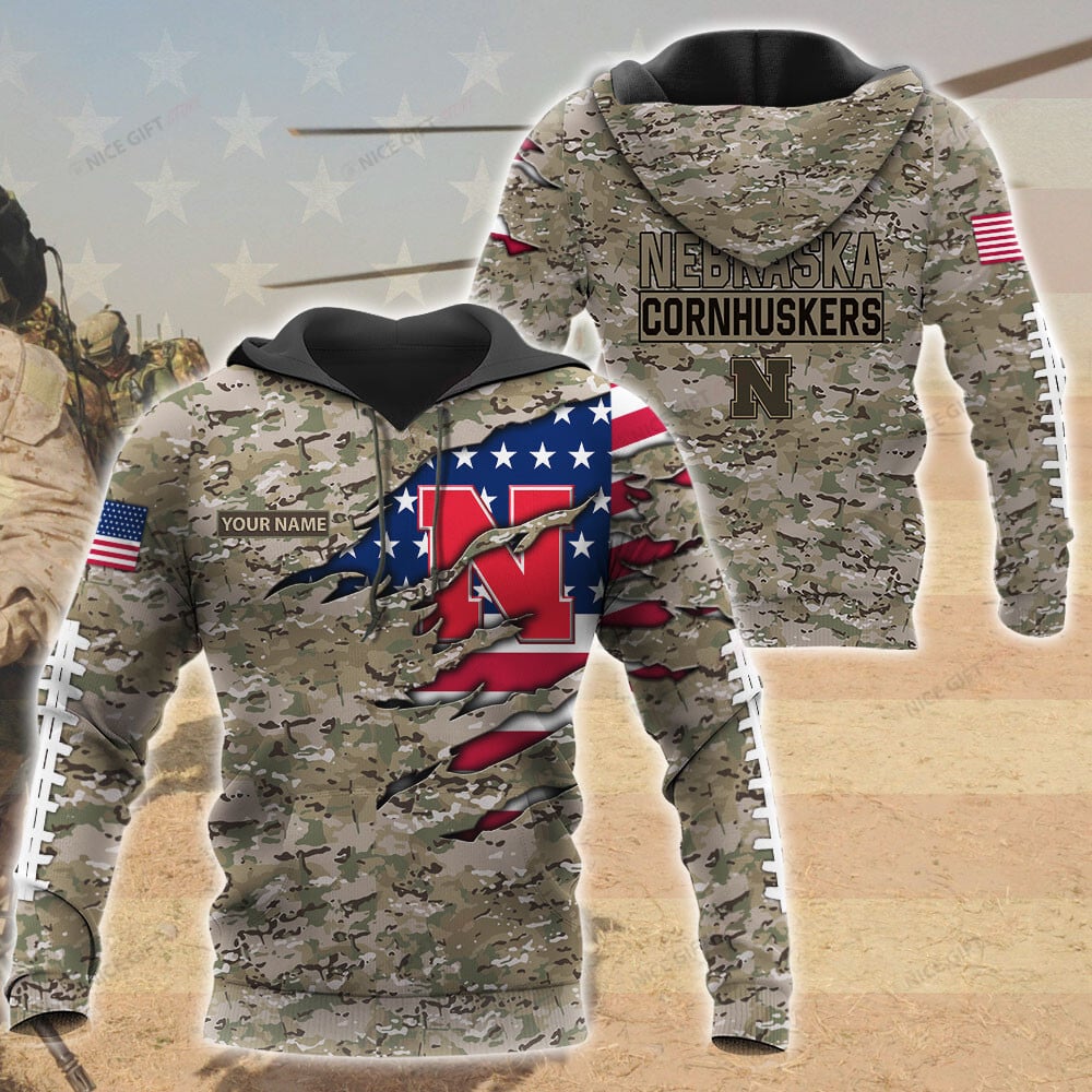 Nebraska Cornhuskers Custom Name Camouflage Hoodie