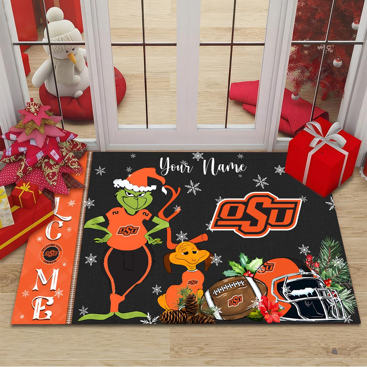 Oklahoma State Cowboys Grinch Christmas Welcome Football Doormat