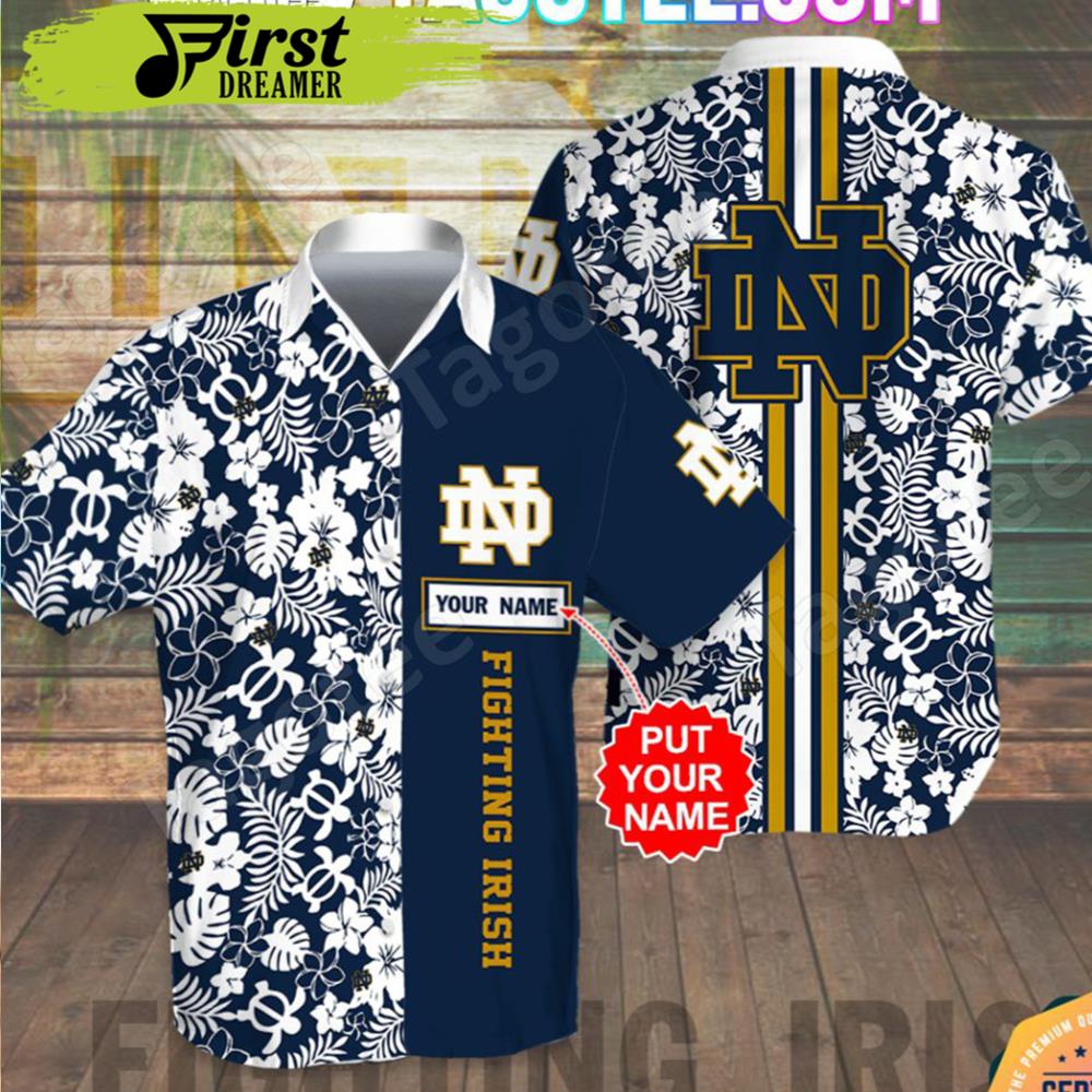 Personalized Notre Dame Fighting Irish Flowery Navy Combo Hawaii Shirt