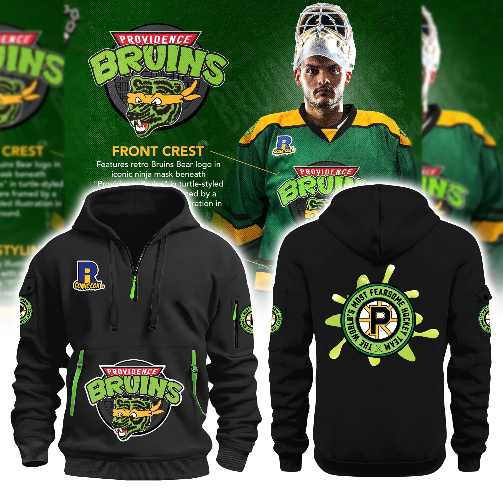 Providence Bruins Turtle Powered RI Comic Black New Hoodie