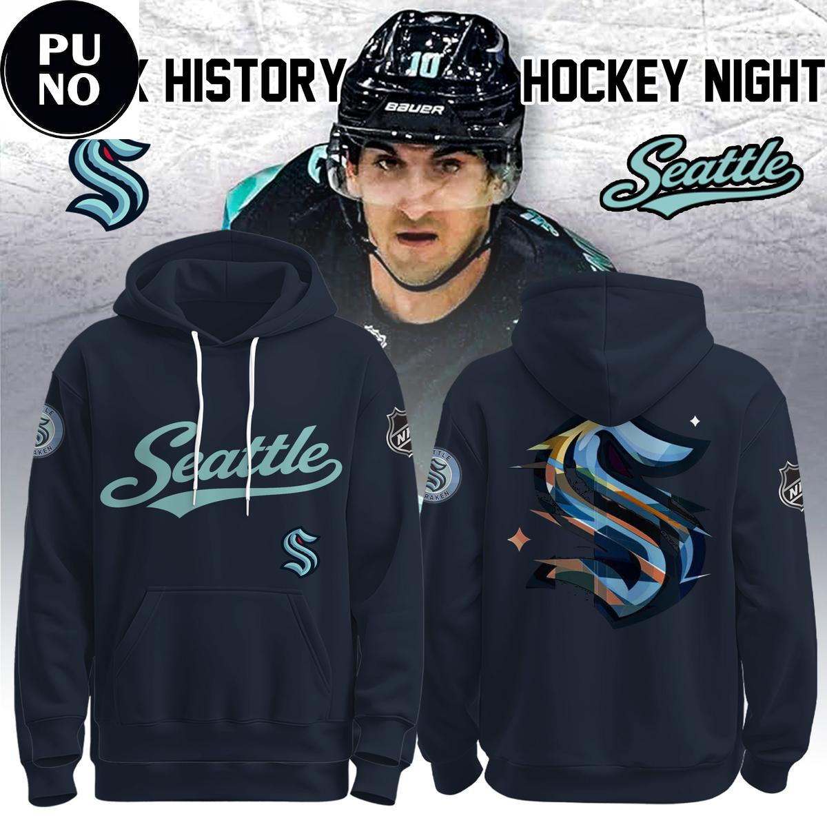Seattle Kraken Black Hockey History Night Hoodie
