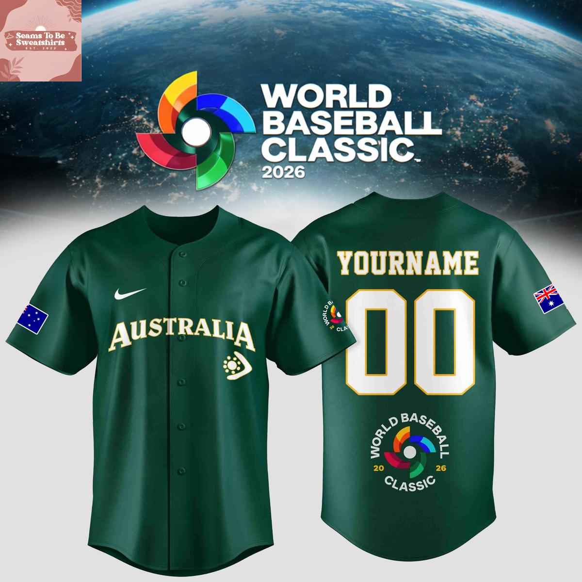 Team Australia World Baseball Classic 2026 Personalized Baseball Jersey
