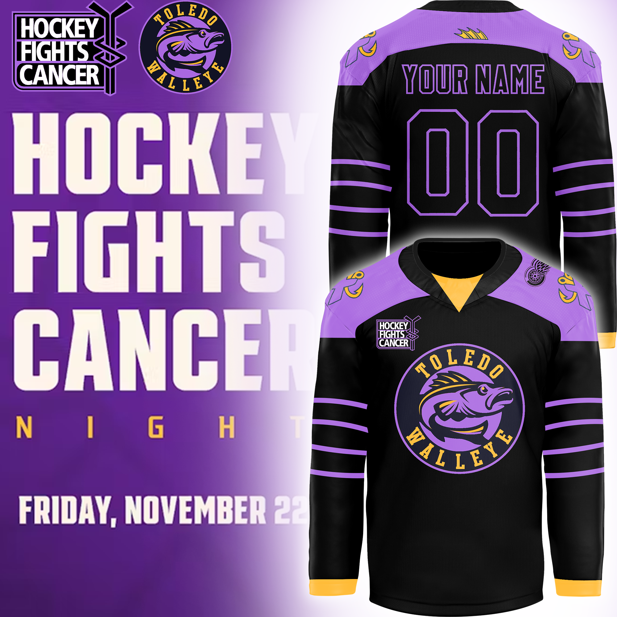 Toledo Walleye x Hockey Fight Cancer Night Custom Jersey