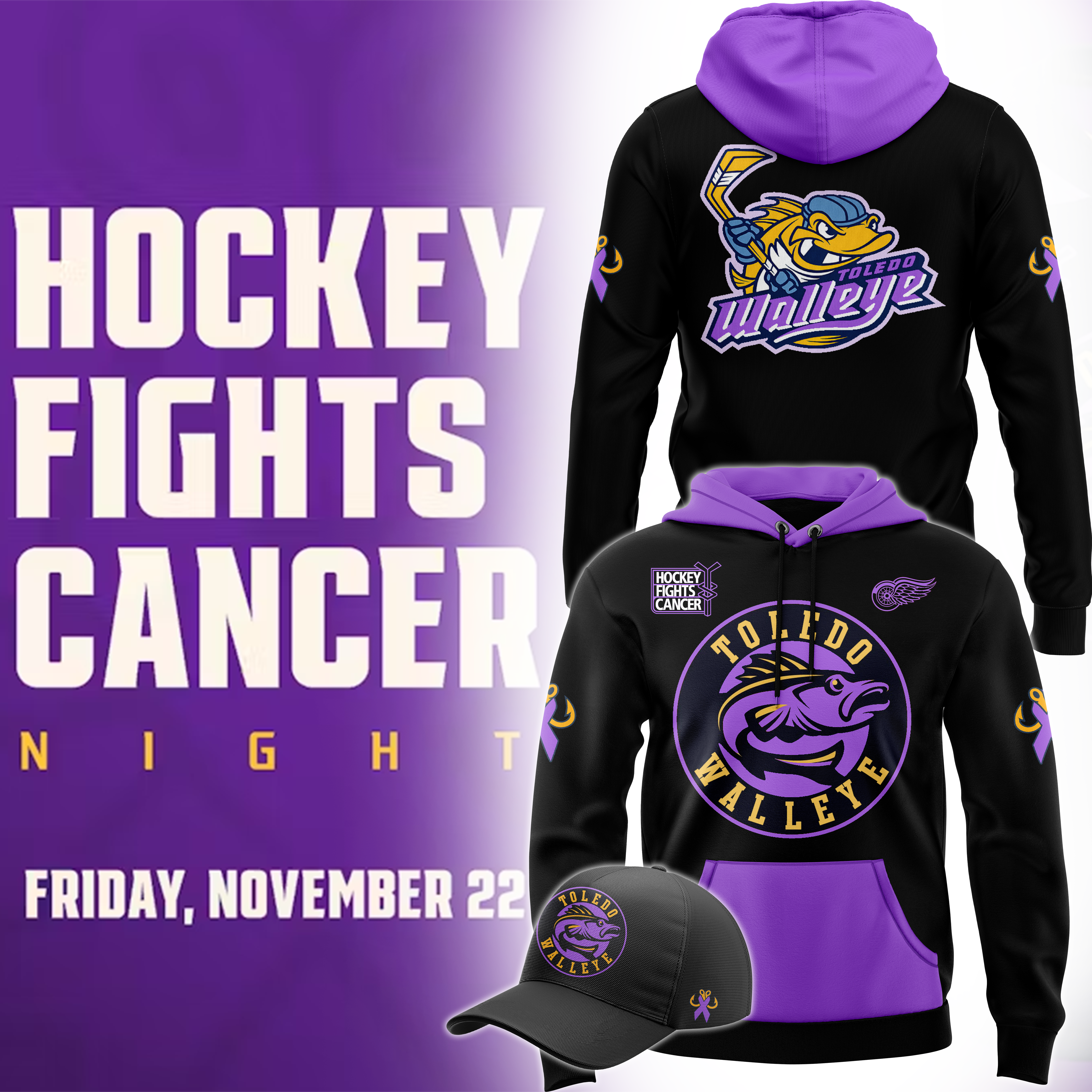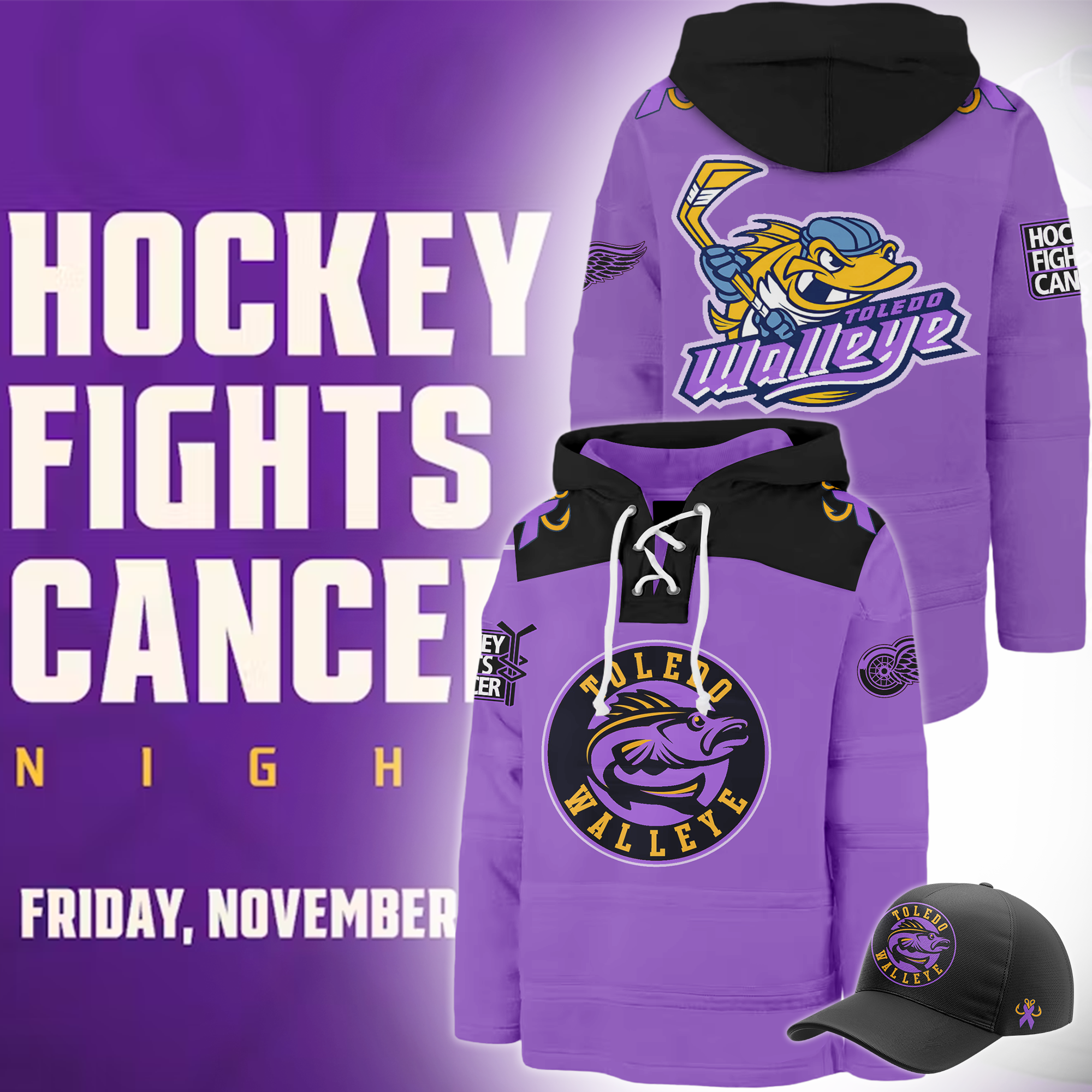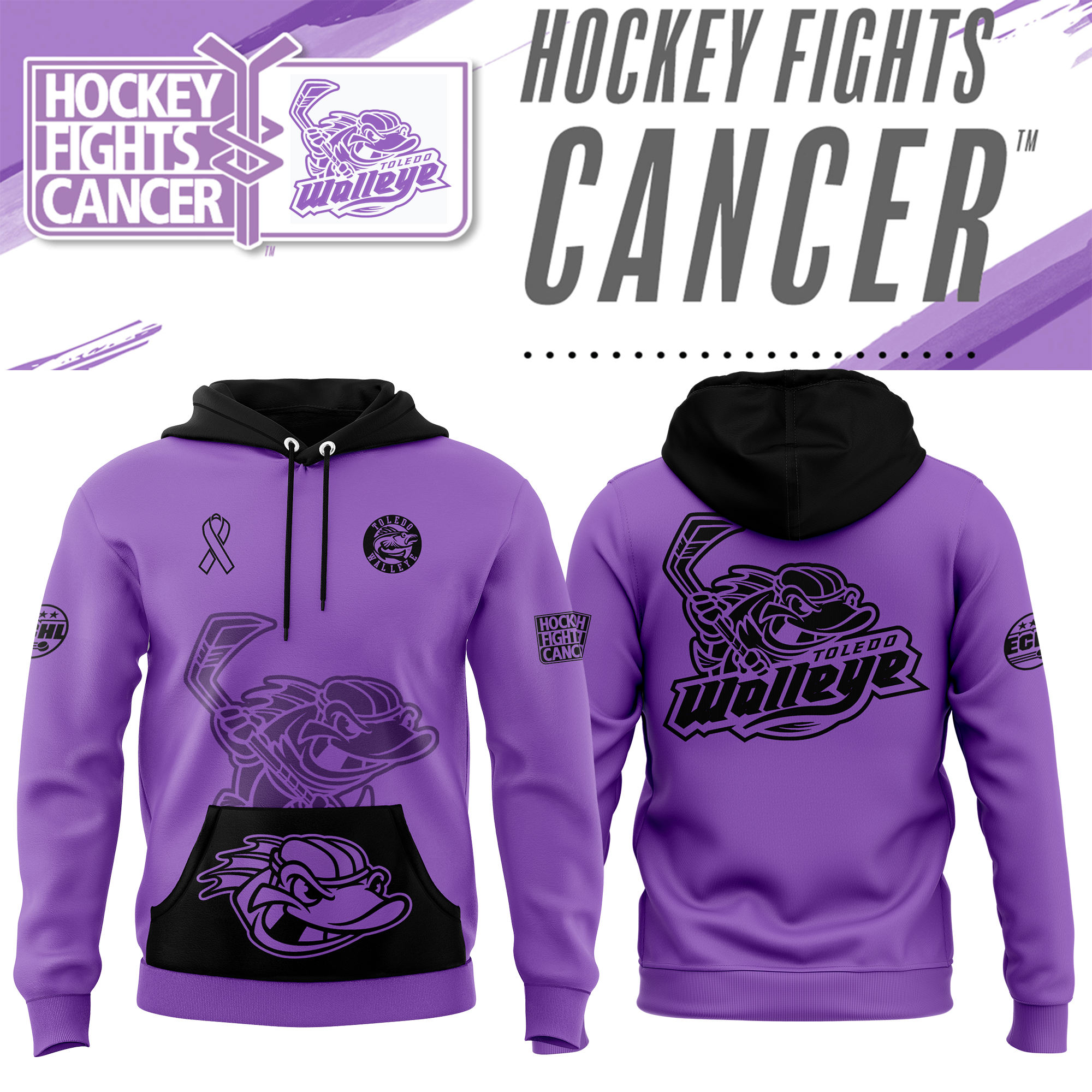Toledo Walleye x Hockey Fight Cancer Night Hoodie
