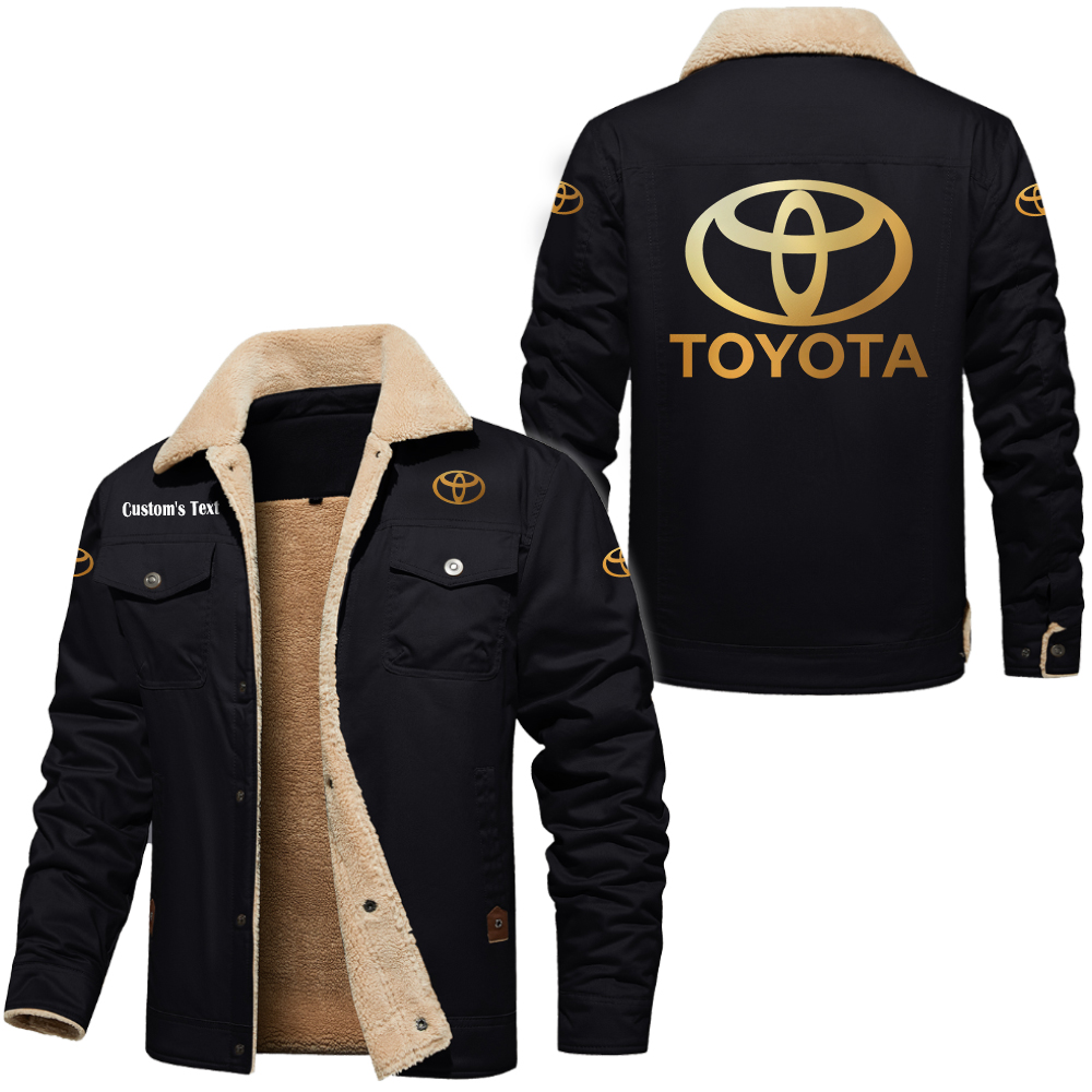 Toyota Motor Corporation Golden Logo Cargo Fleece Lined Cotton Jacket Multicolor, vintage style, customize name