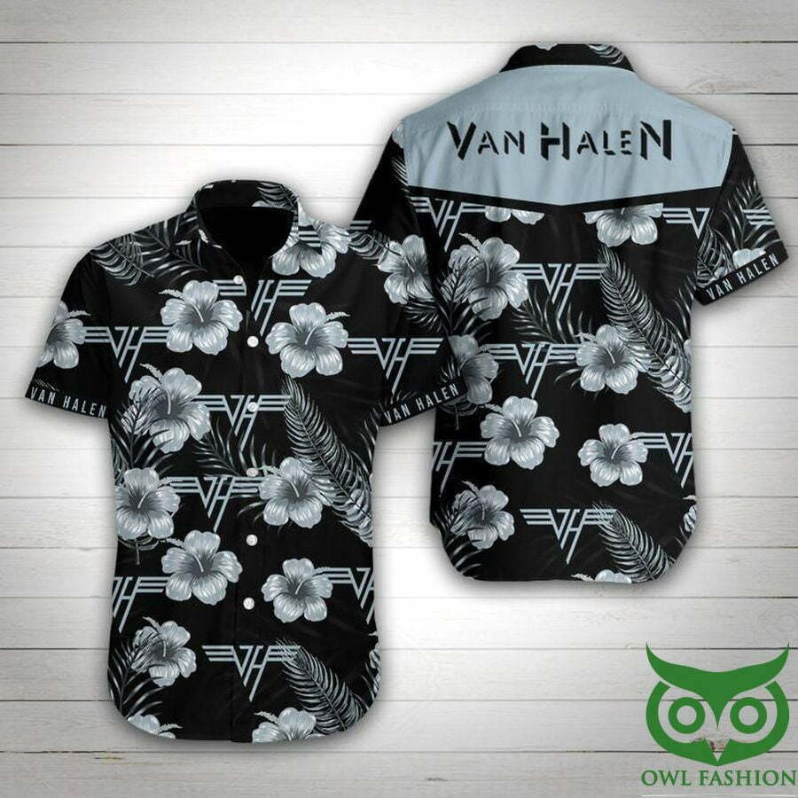 Van Halen Band Blue Gray Floral Black Hawaiian Shirt